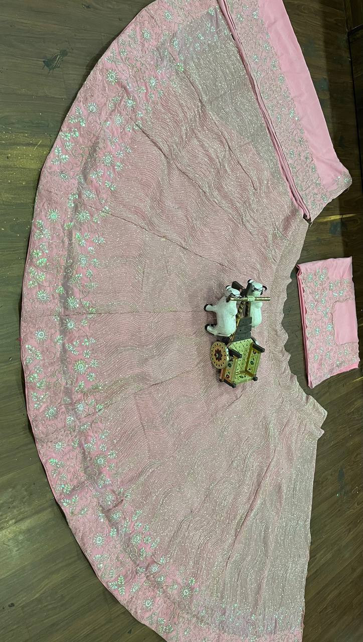 Step into elegance with this stunning Fox Georgette Lehenga Set, featuring intricate Fancy Coding Sequins Work that adds a touch of glamour to every occasion. Designed with a 4-meter grand flare, Cancan & Canvas Patta for perfect volume, this lehenga ensures a royal look.