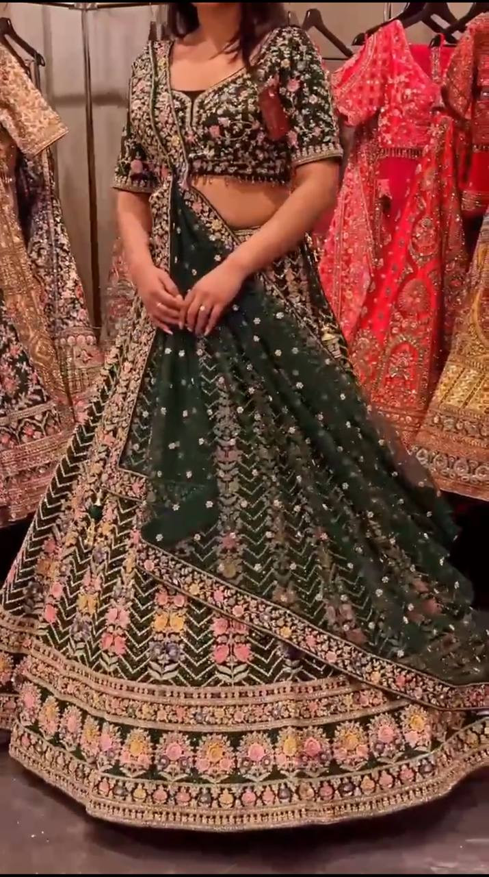 This lehenga is a perfect fusion of elegance and comfort, making you stand out at any celebration with its luxurious fall and intricate detailing.