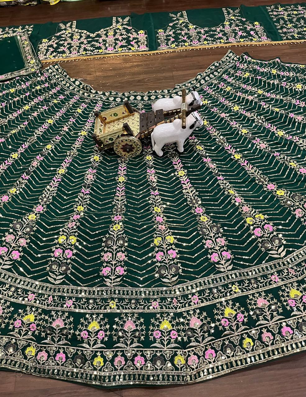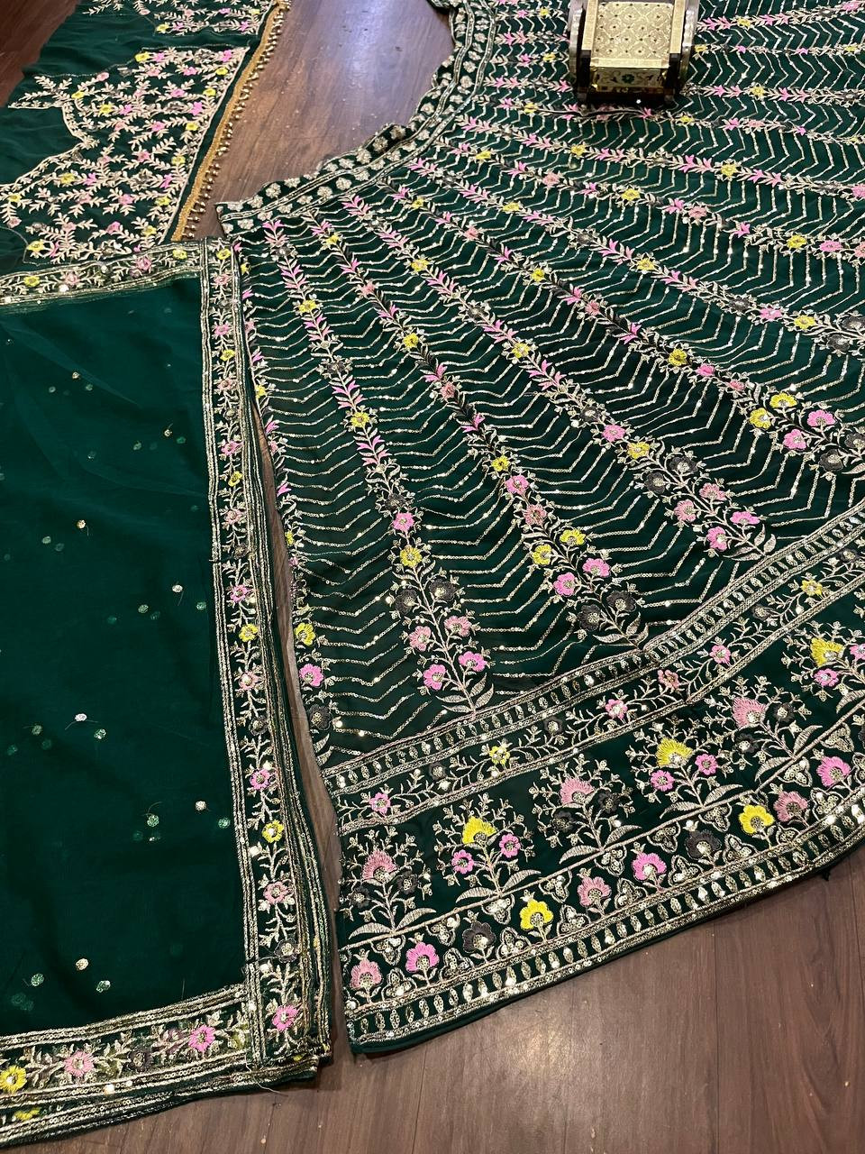 Elevate your ethnic wardrobe with this exquisite 4-meter flared Fox Georgette Lehenga — a perfect blend of glamour, comfort, and craftsmanship. Designed with premium sequin embroidery work, it features Can-Can and Canvas layers that enhance the flare and volume, making it ideal for weddings, receptions, and festive occasions.