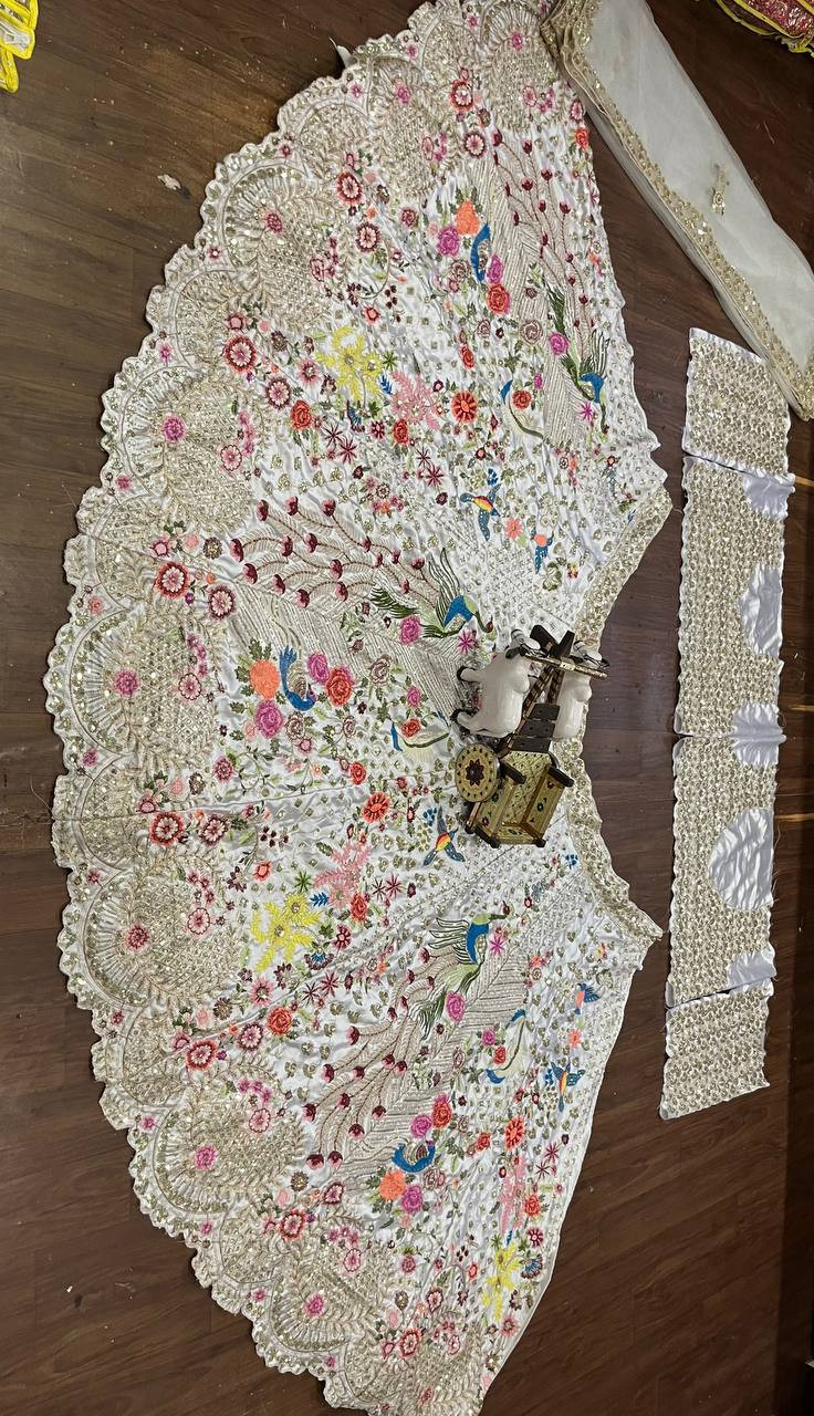 Unveil elegance with our 4 Meter Flared Japan Satin Silk Lehenga, a masterpiece that blends luxurious fabric, intricate embroidery, and modern craftsmanship. Designed to make you shine at any festive or wedding occasion, this semi-stitched lehenga promises both comfort and glamour.