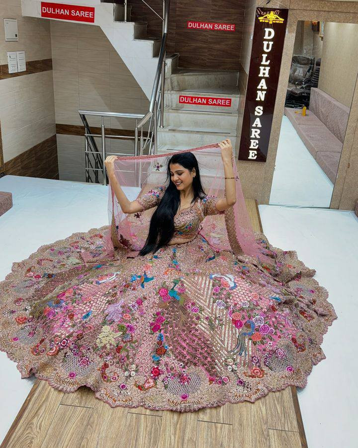 Elevate your festive and wedding wardrobe with this 4-meter flared Lehenga. Crafted in premium faux georgette, it features exquisite sequins embroidery enhanced with Can-Can and Canvas layers for perfect volume and elegance.