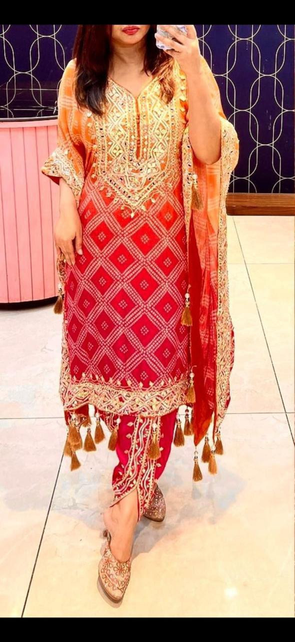 Fabric Details :Beautiful printed Embroidery Tread Work And Bhandani Printed Chinnon Work With Heavy Latkan