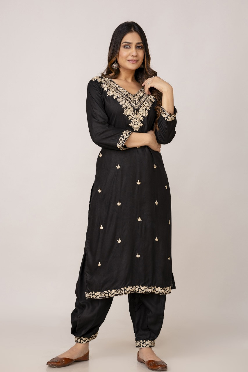 Beautiful heavy reyon Kurti Afghani Pant set with beautiful embroidery work