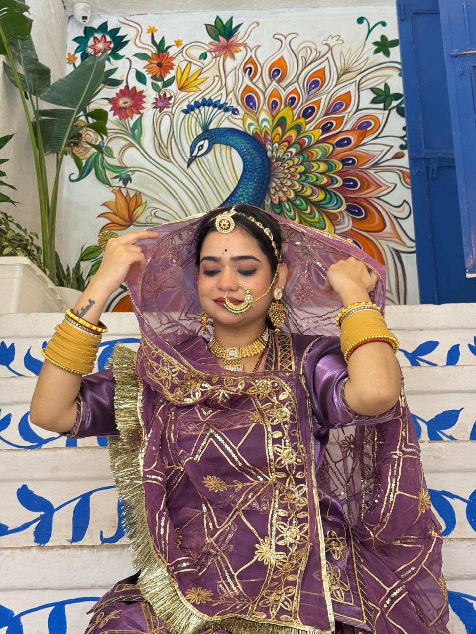 Bindani Lavender Tissue Rajputi Poshak – Premium Hamrahi Pure Odhna, Heavy Fancy Work