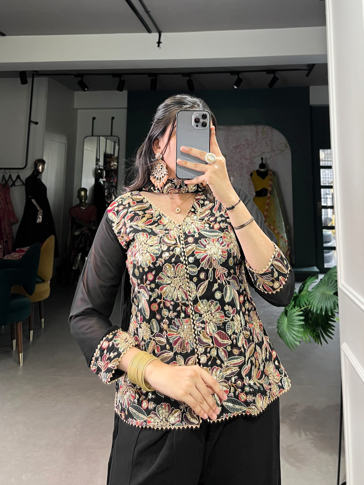 Dupatta Work : Plain With Sequins and Thread Embroidery Work