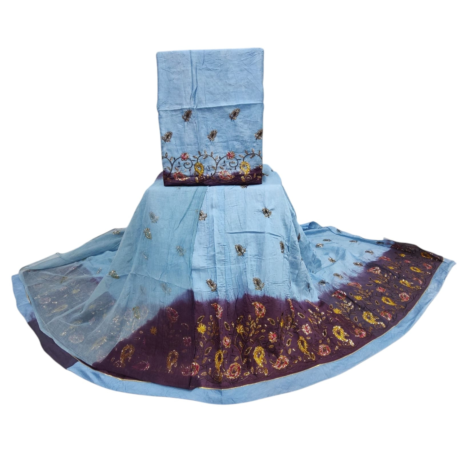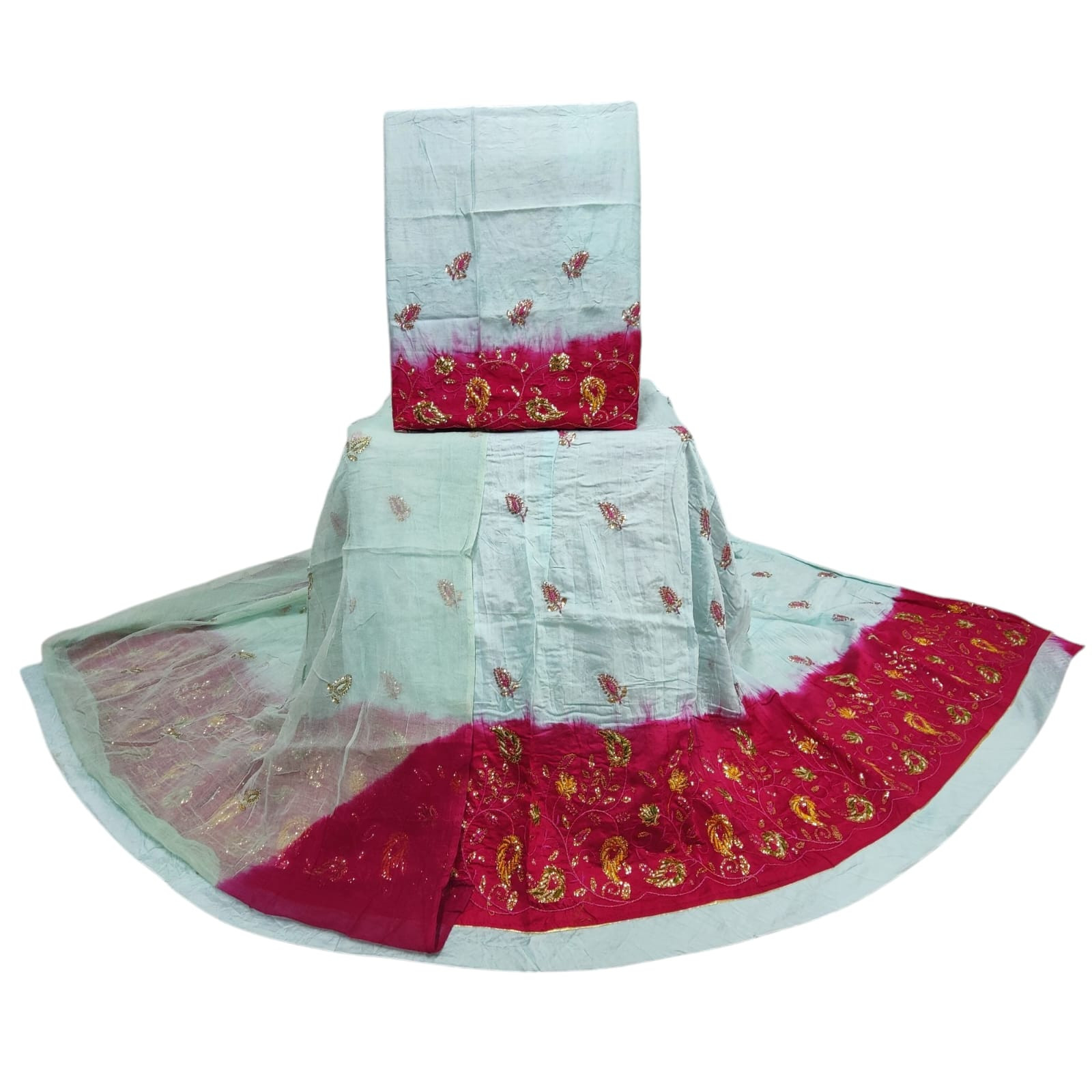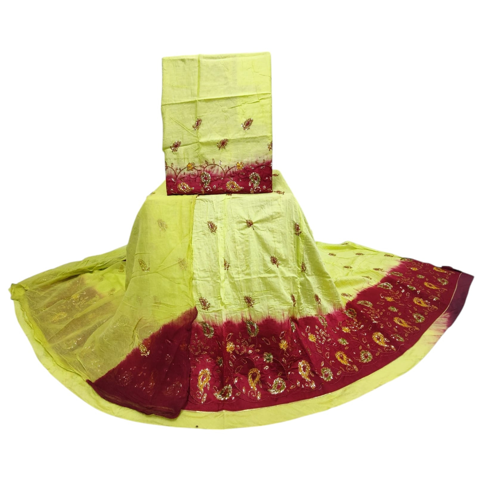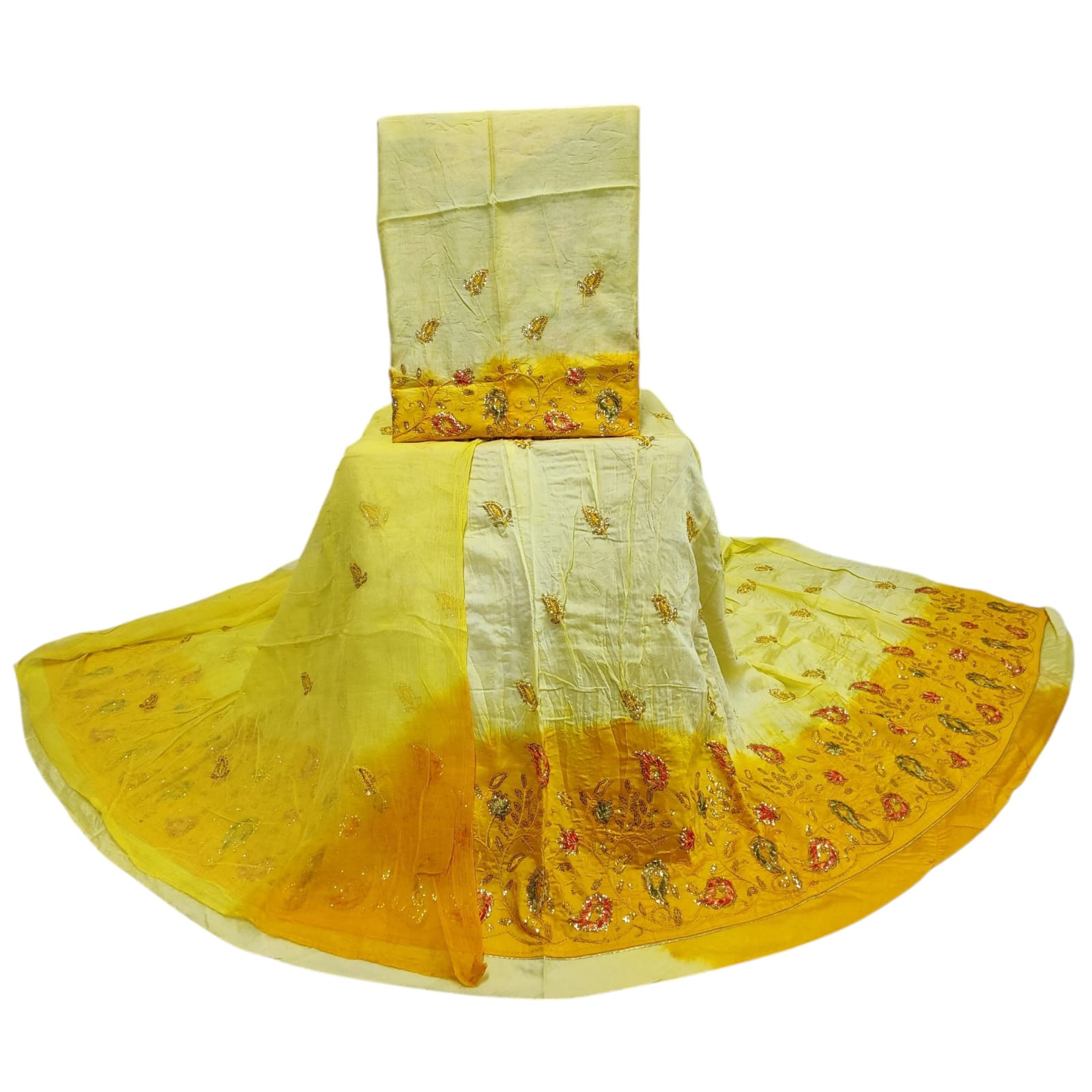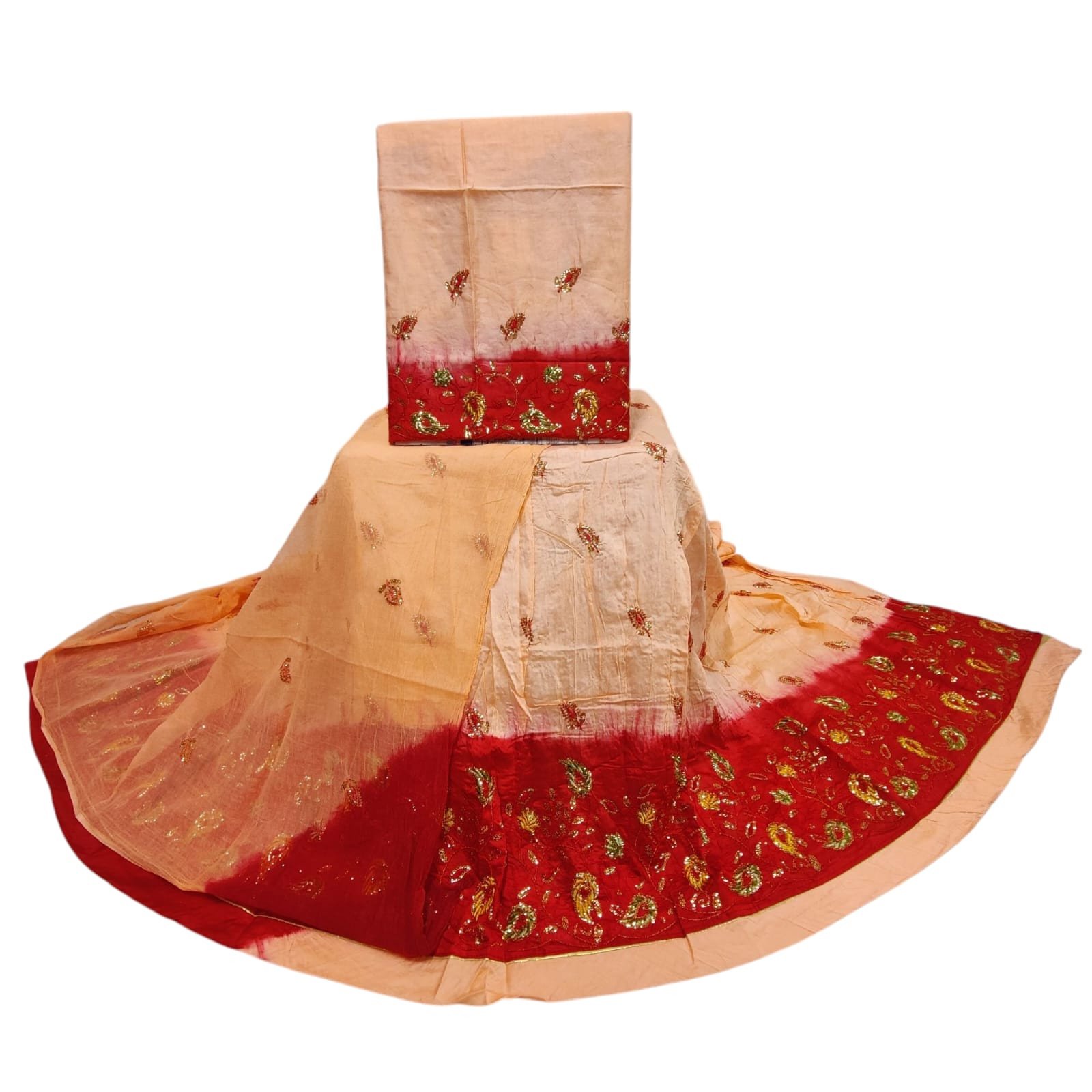 Comes with a full-size multicolor printed cotton odhna, blending vibrant hues and patterns that perfectly complement the suit.