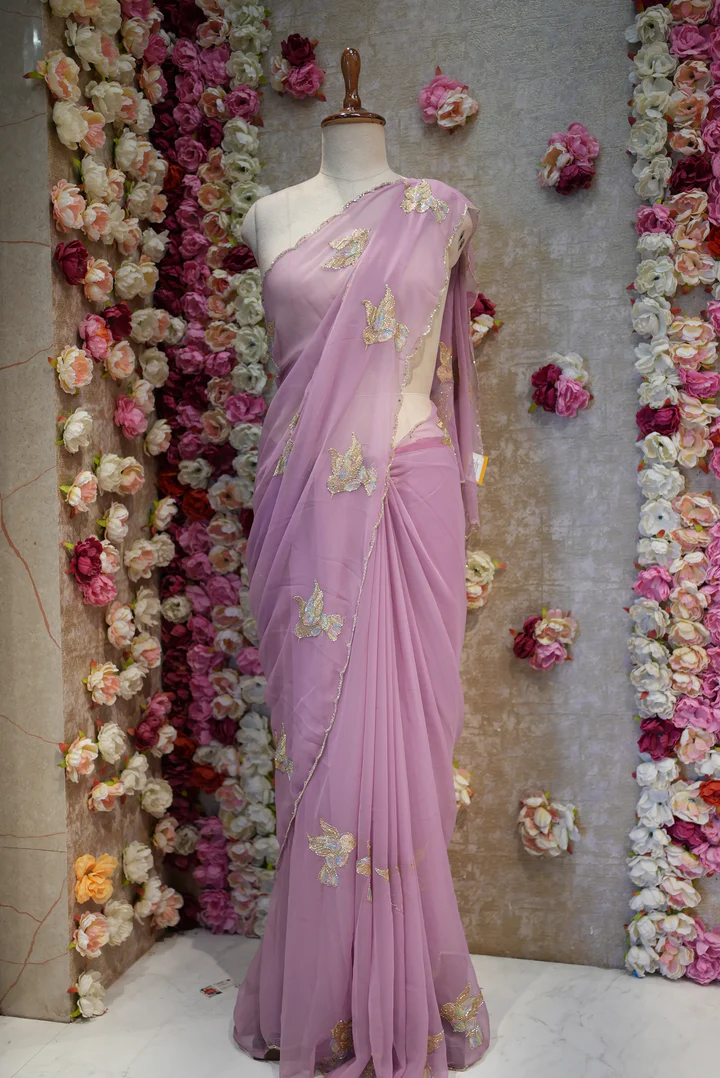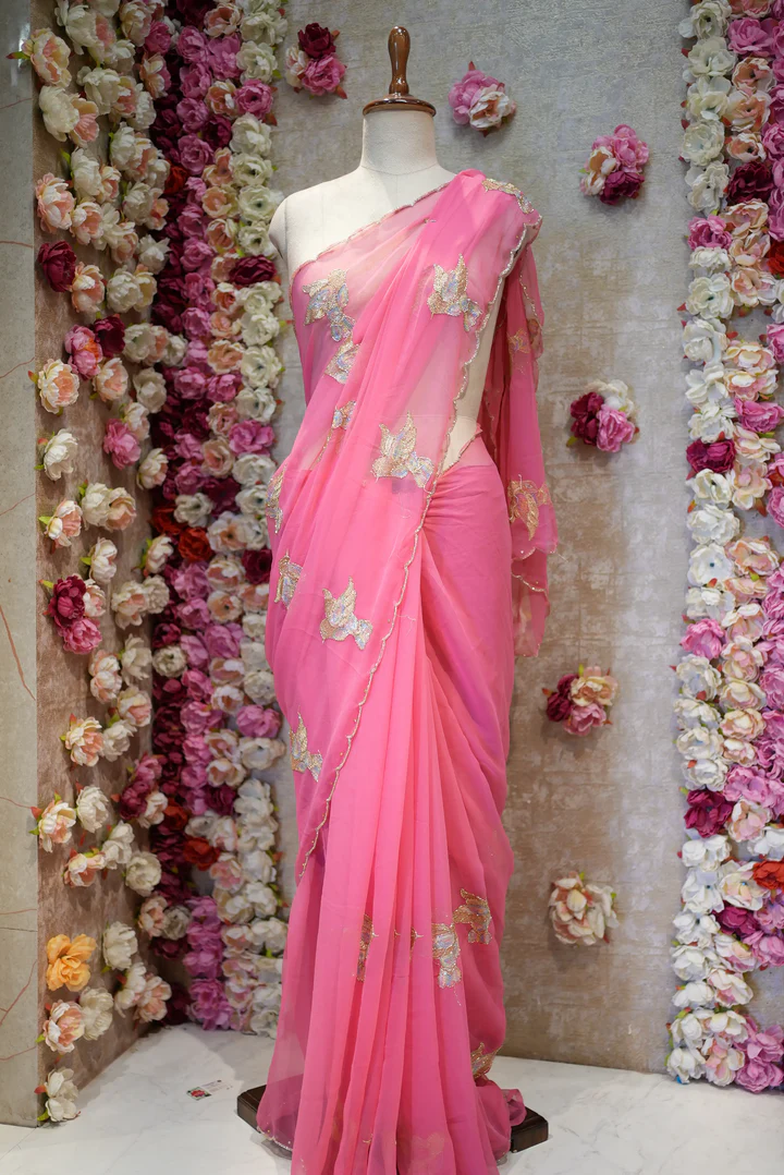 FIGURE PATTERN SAREE WITH SEQUENCE & CUTDANA WORK ON ROYAL GEORGETTE FABRIC (WITH BLOUSE) -