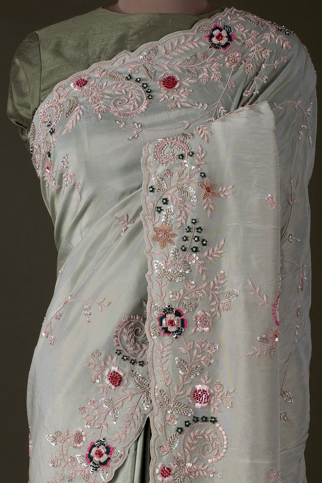 Chinon silk saree is a luxurious and elegant traditional Indian garment made from a special type of silk fabric known as Chinon silk. Chinon silk is a lightweight, smooth, and slightly glossy fabric, often characterized by its soft texture and subtle sheen. It is widely appreciated for its delicate drape and breathable qualities, making it a popular choice for festive occasions and formal events.