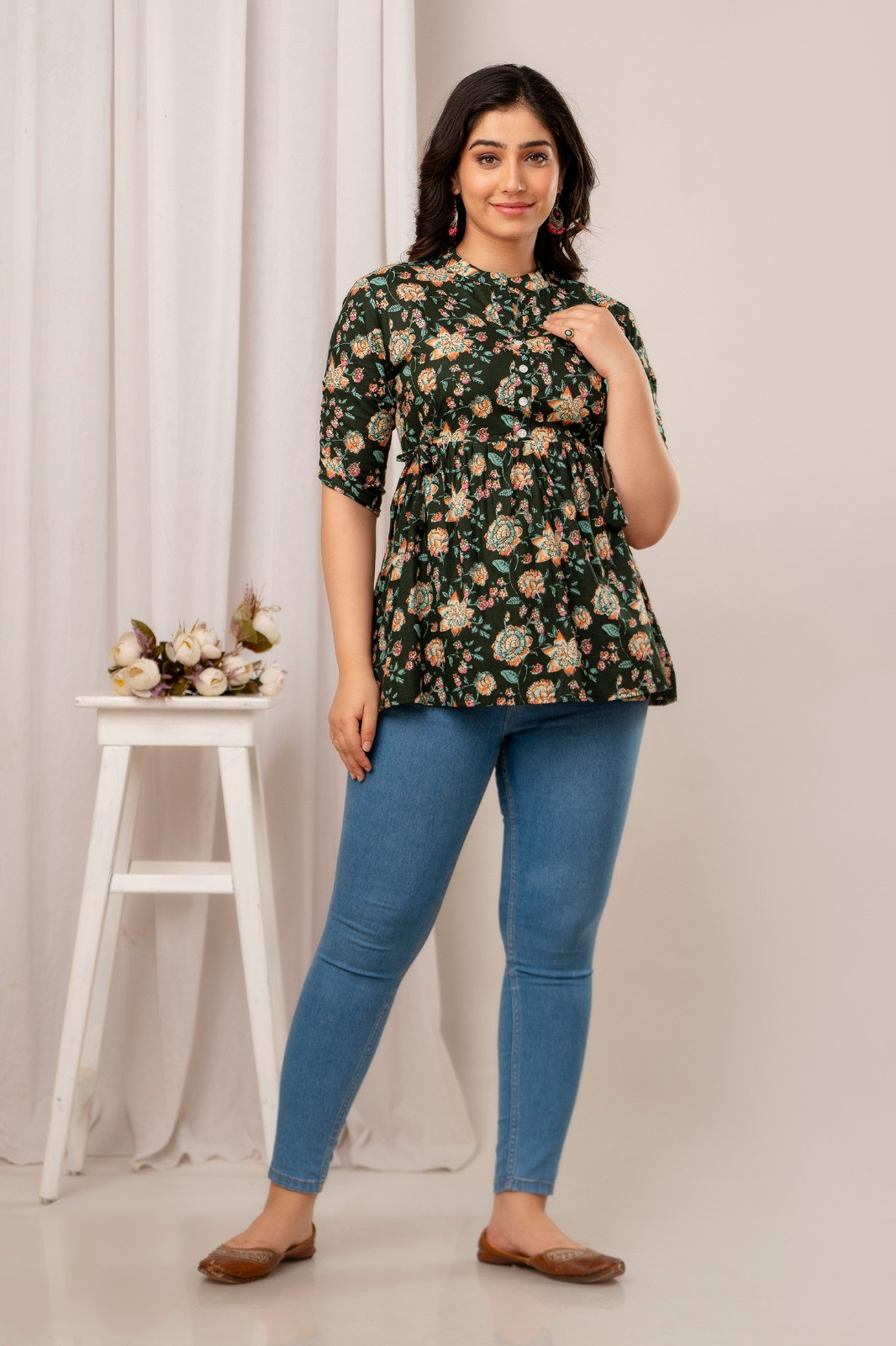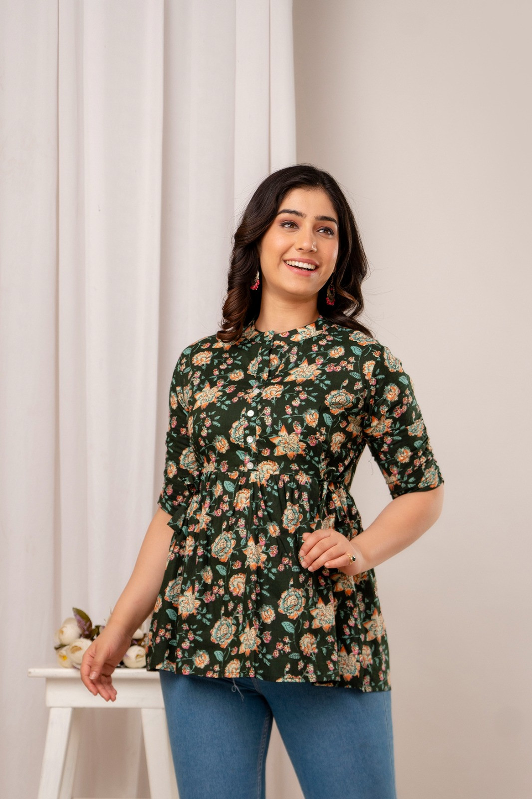 Women's Pure Cotton Floral Printed Regular Fit Top Comfortable & Stylish Indian Ethnic Wear for Everyday, Office, and Casual Outings - Versatile Women's Kurta