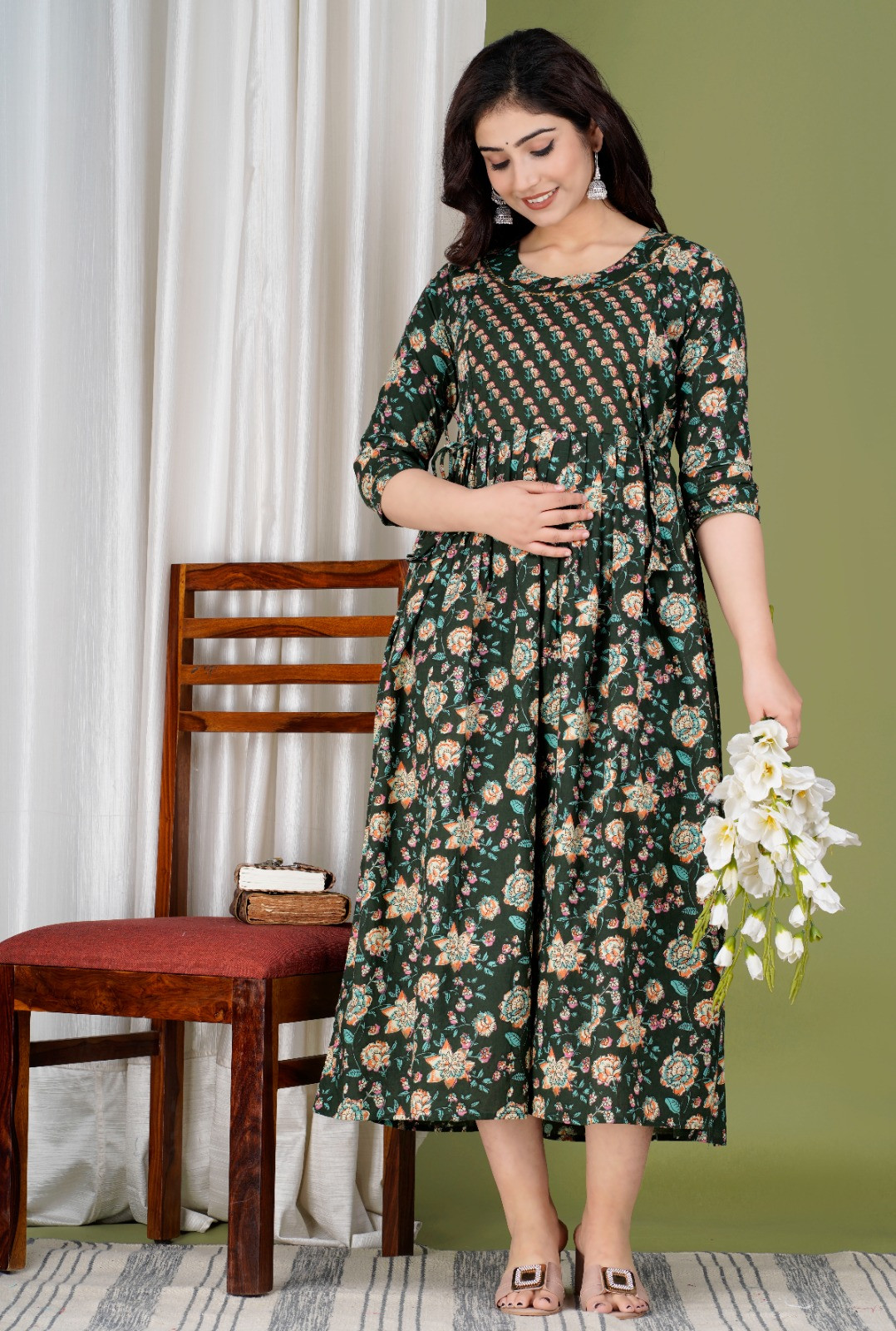 Latest Anarkali Gown Style Western Dress is lightweight, breathable, stretchy & incredibly soft to the skin and keeps you cool all day long. The Feeding top has been designed uniquely plats around tummy area to hide Pre and Post Pregnancy baby bump beautifully.