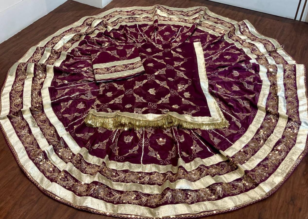Designer 5 MTR Gher Lehanga Creep Shuit