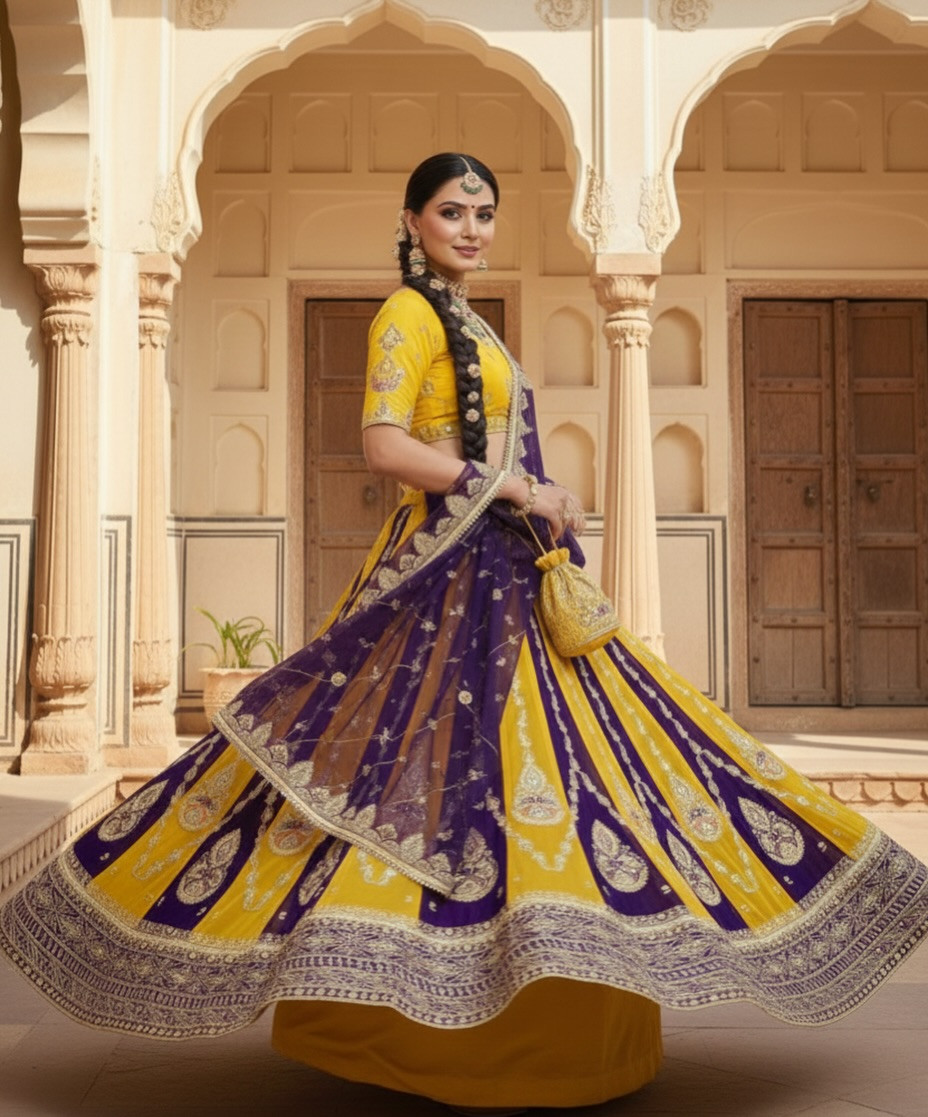 Designer 5 Mtr Gher Rajwadi Style Lehanga Poshak.