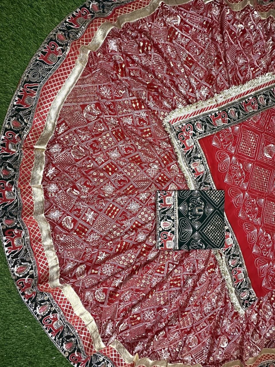 • Premium Qualitya Gorgette Fabric with Royal pure Odhani