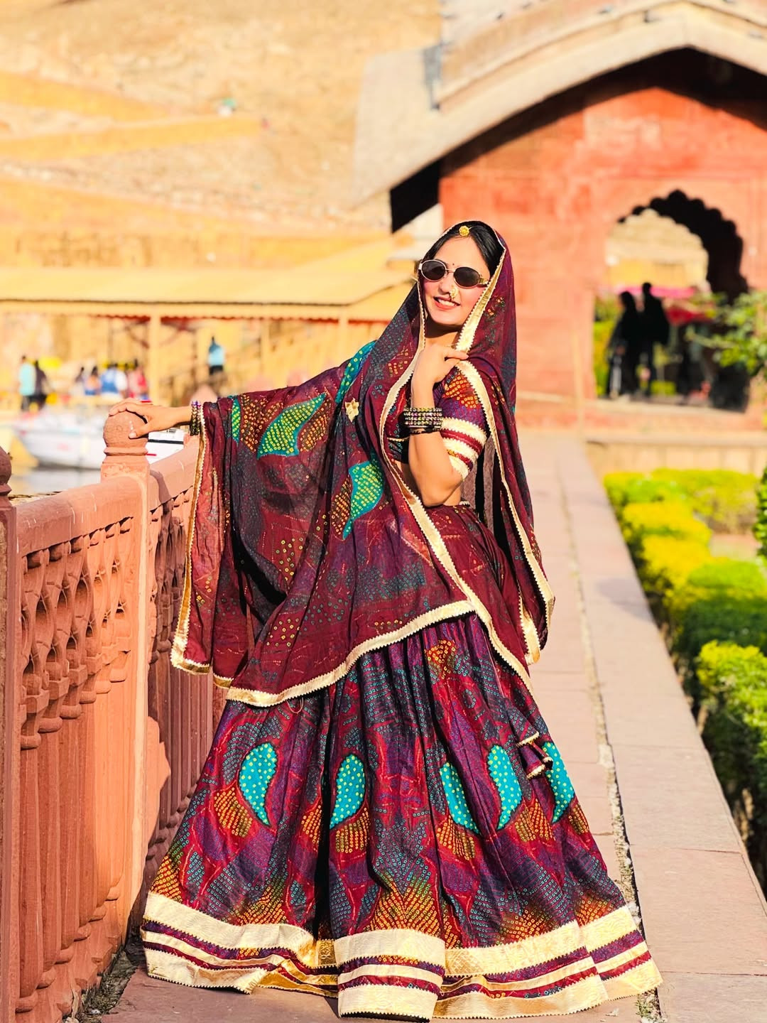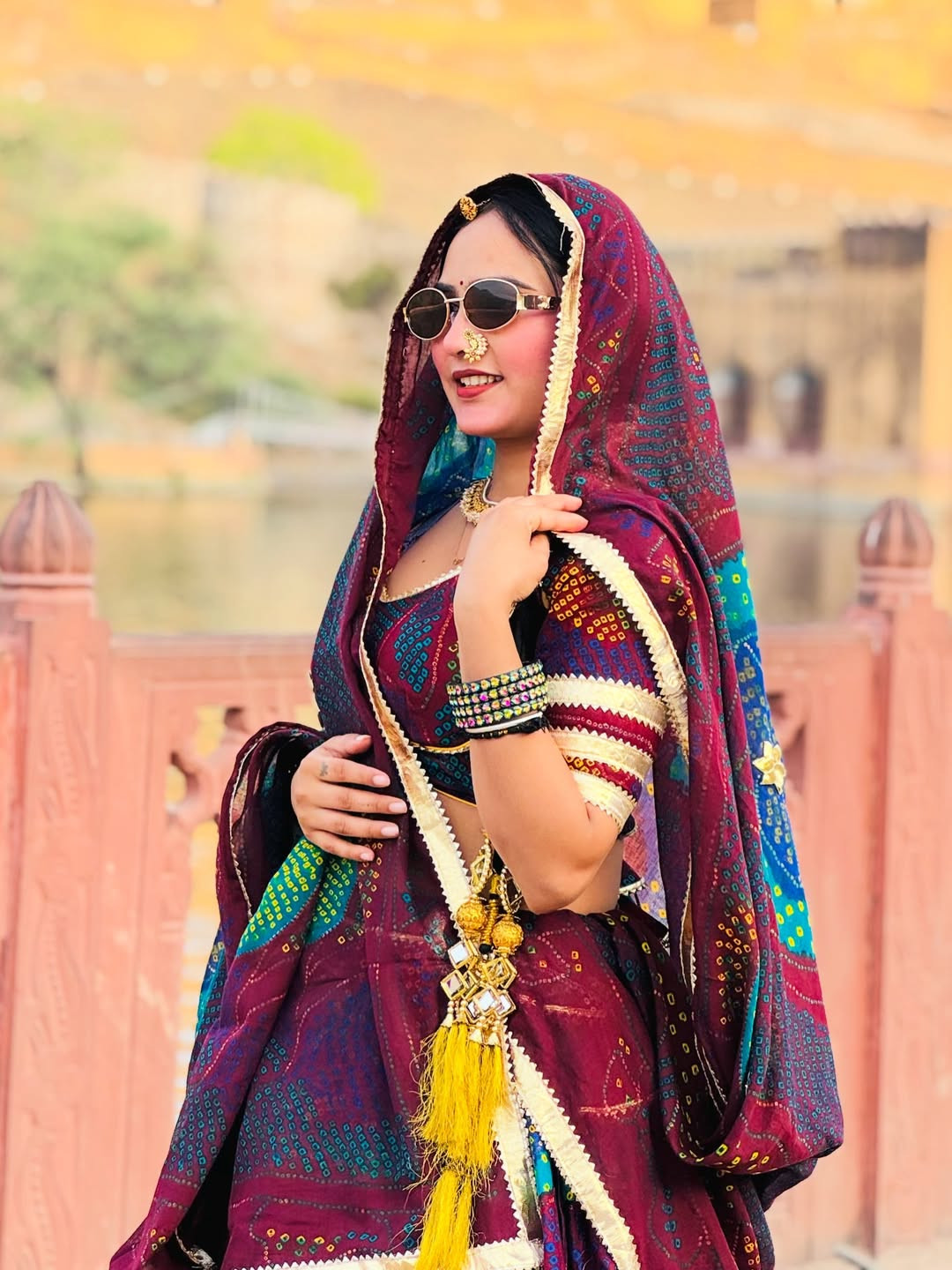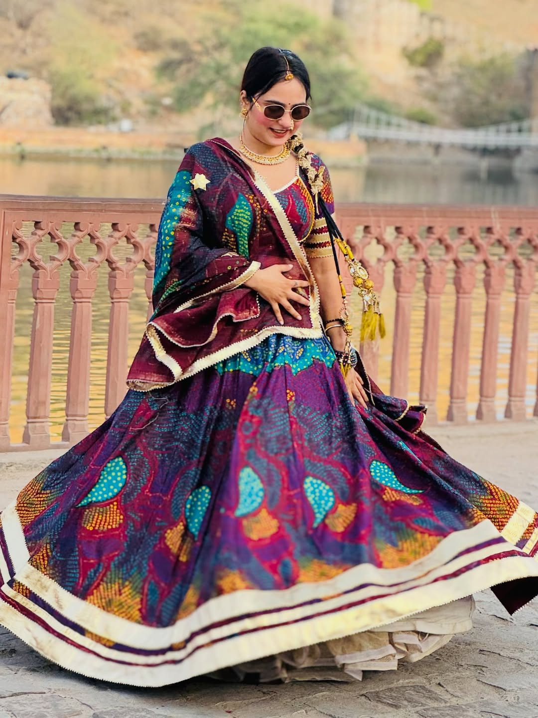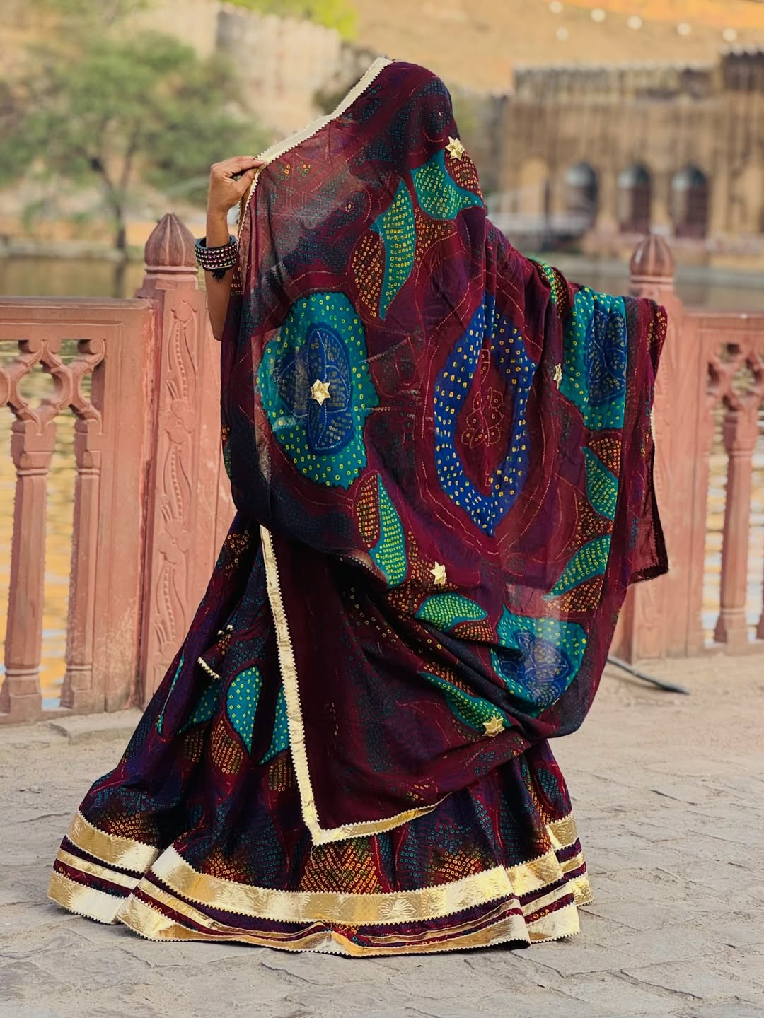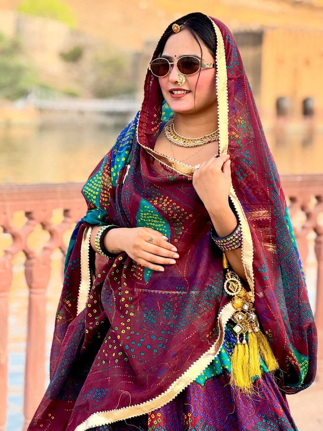 The lehenga comes fully stitched with a grand 4-meter flare, ensuring a graceful and royal look. Paired with an unstitched chiffon blouse fabric, you can customize it to your perfect fit and style. The matching Bandhej dupatta (odhni) completes the traditional Shekhawati vibe beautifully.