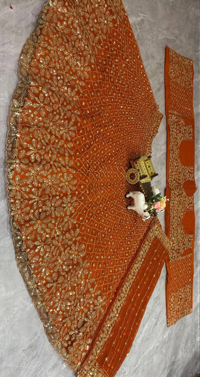 The voluminous 4-meter flare enhanced by cancan and canvas layers offers the perfect twirl-worthy silhouette—lightweight yet grand in appearance. Designed as a semi-stitched ensemble, it allows for a customized fit up to size 44.