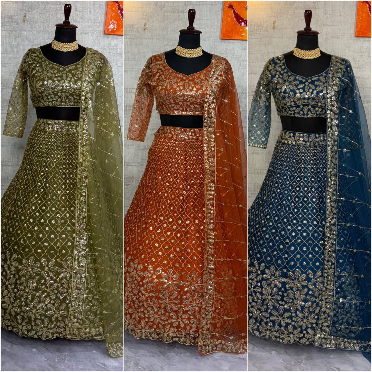 Introducing our 4-meter flared Butterfly Net Lehenga, a masterpiece that blends timeless elegance with modern charm. Crafted from luxurious Butterfly Net fabric, this lehenga showcases intricate sequins embroidery that adds a radiant sparkle to every step.