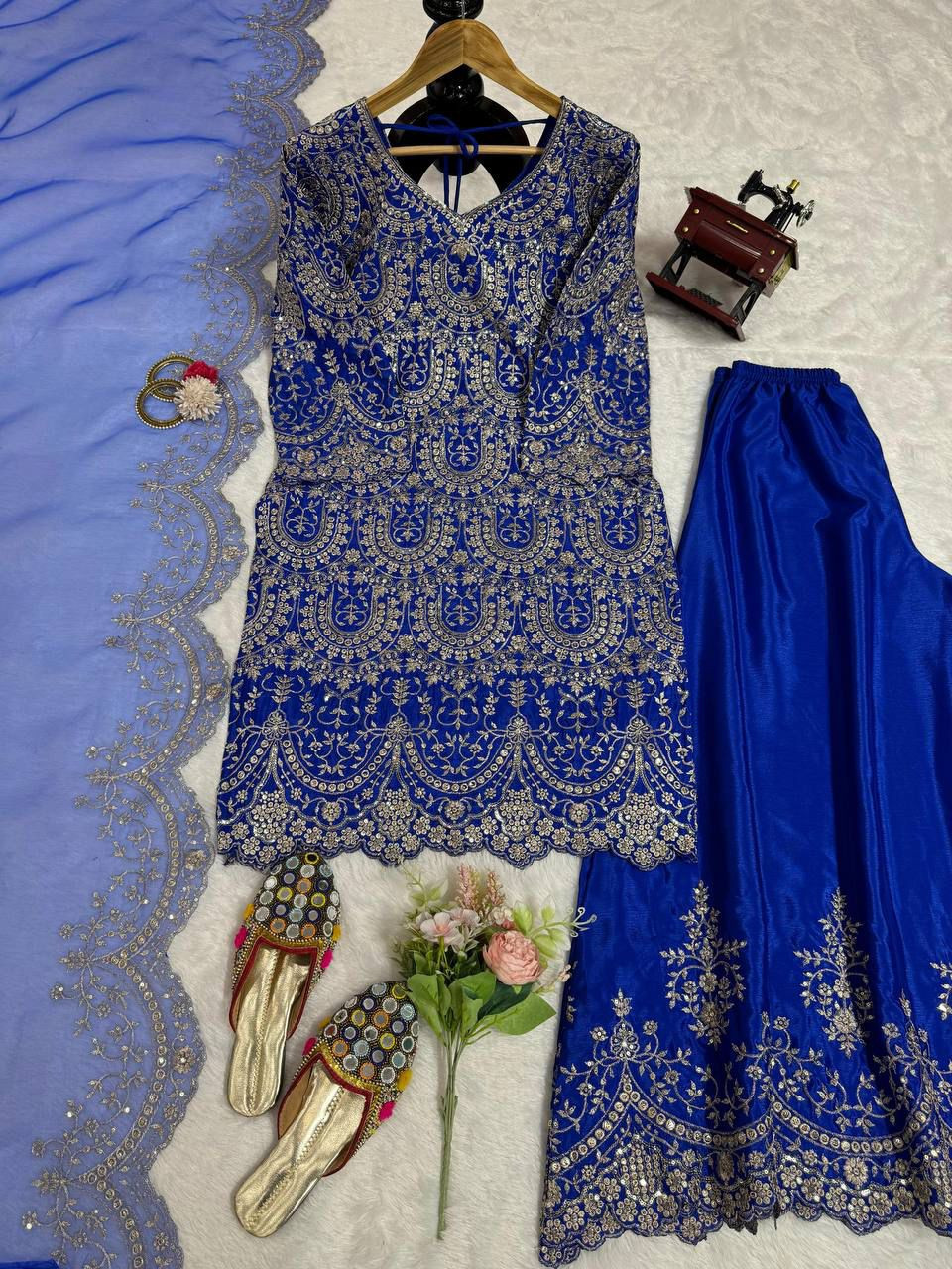 Step into timeless elegance with this beautifully crafted Chinon Silk Plazo Set—a perfect blend of grace and style.