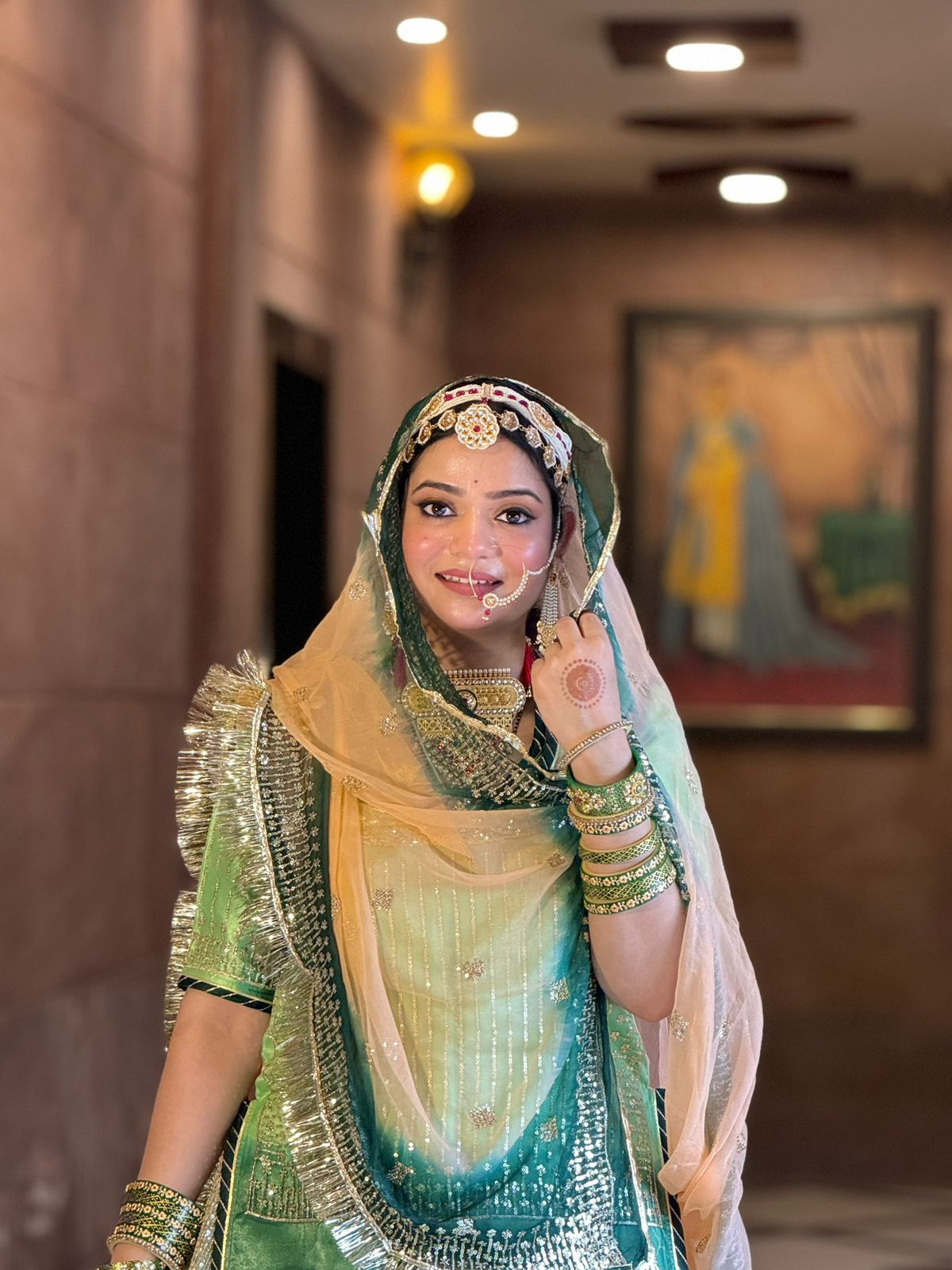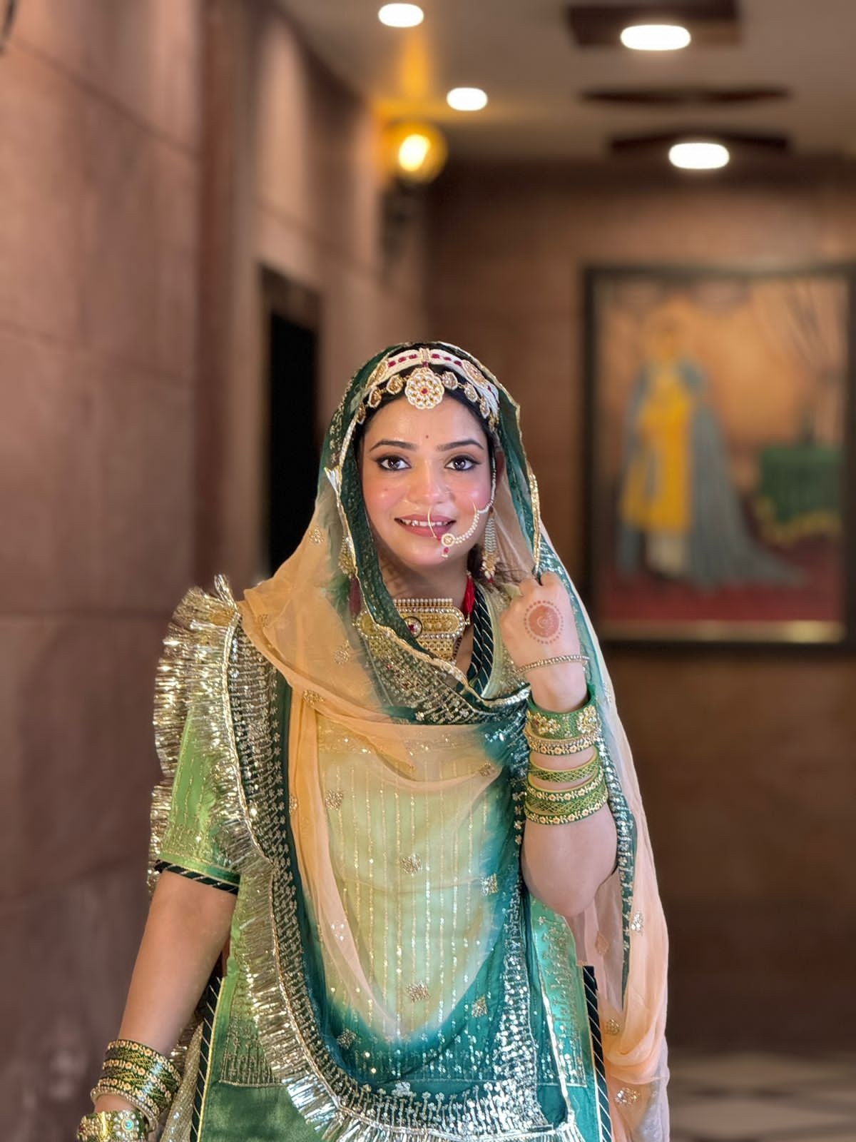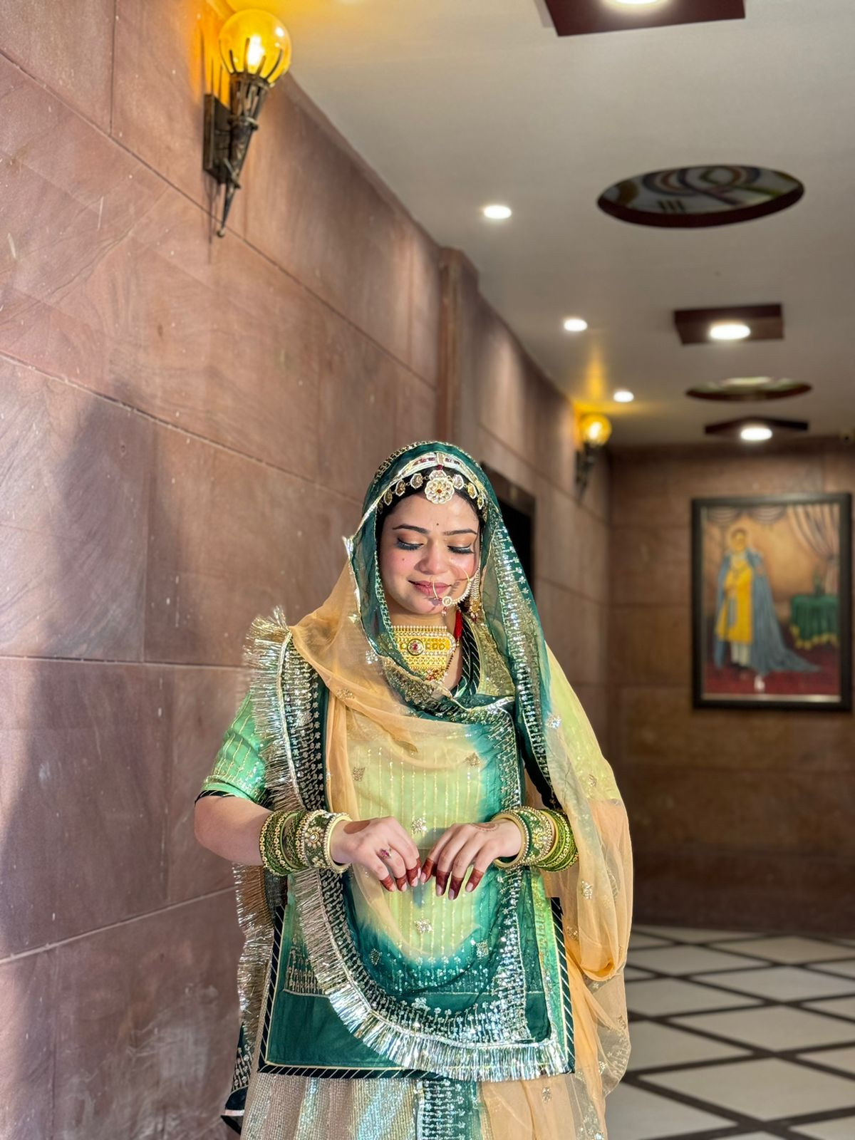Handle with Care: While wearing and handling the poshak, be mindful of sharp objects or rough surfaces that may snag the fabric or embroidery.