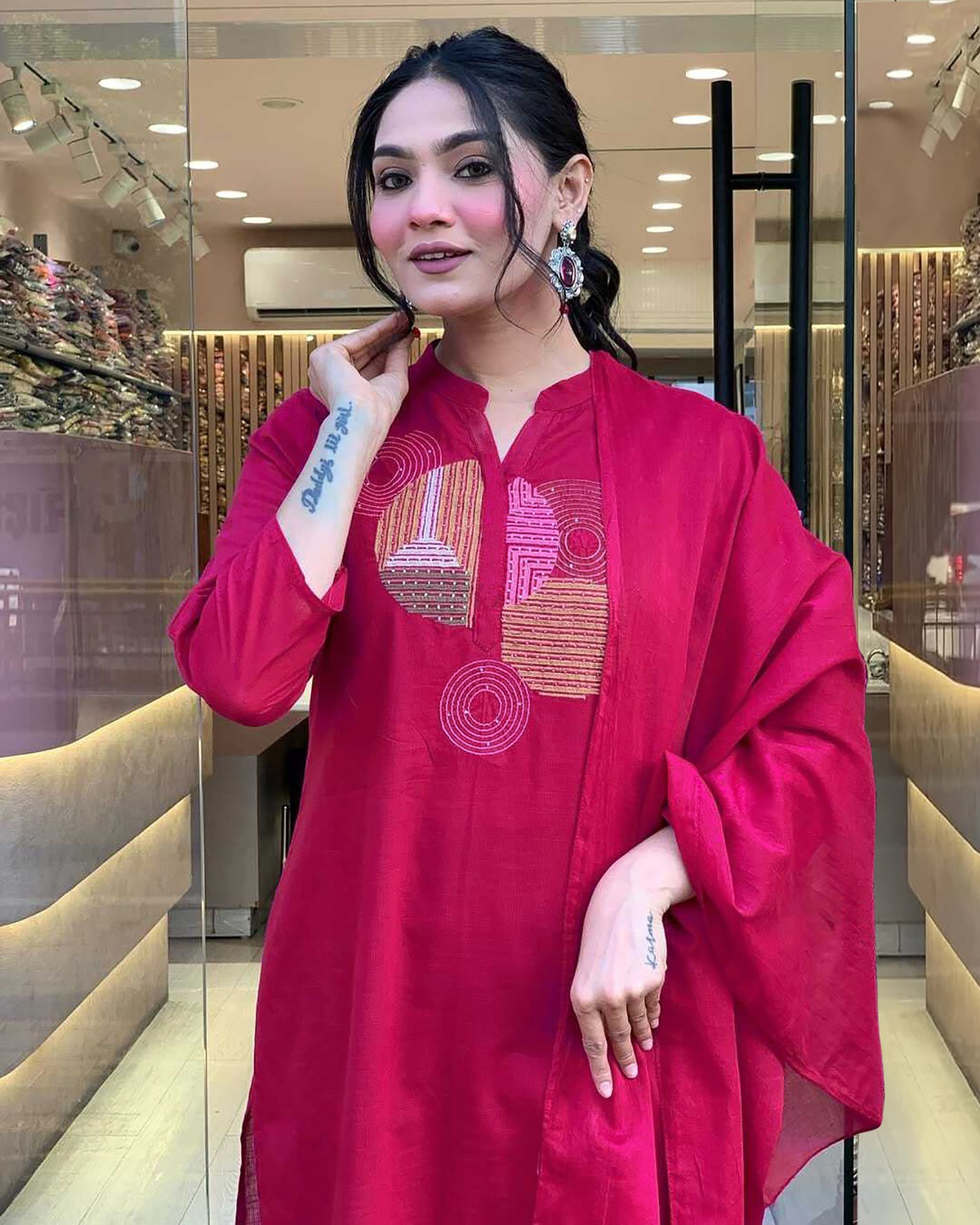 This 3-piece set is perfect for festive occasions, parties, or casual gatherings. Its comfortable fabric paired with elegant embroidery makes it a must-have addition to your ethnic wear collection