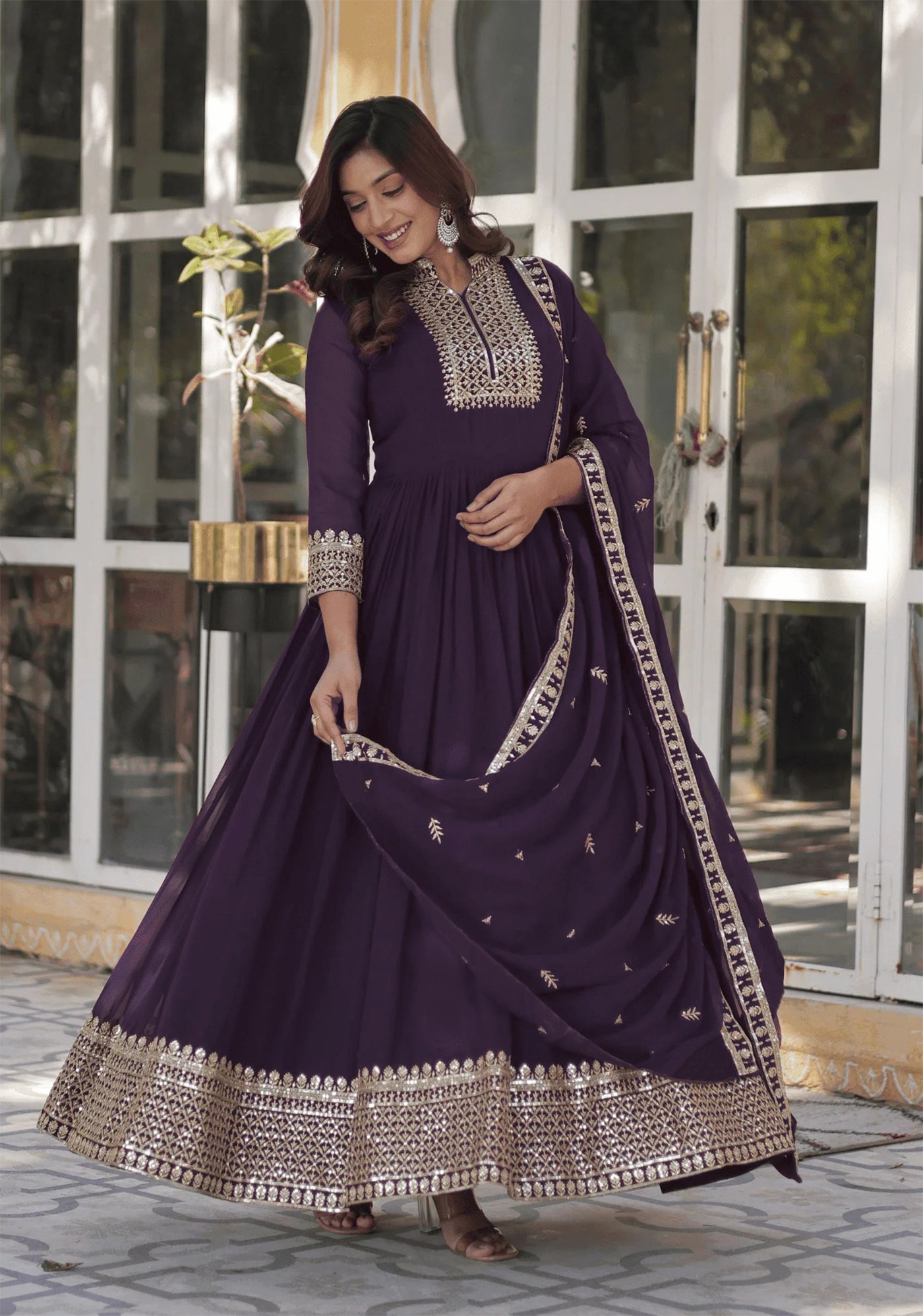 Step into elegance with this stunning Embroidered Georgette Stitched Anarkali Gown with Dupatta, crafted to perfection for festive occasions, weddings, and parties.