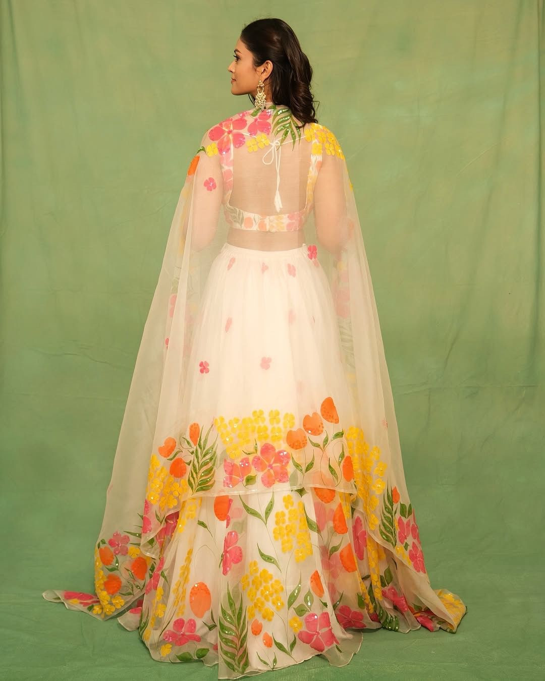 Dupatta: Soft and lightweight tabby organza silk dupatta adorned with matching floral prints, adding a graceful finishing touch.