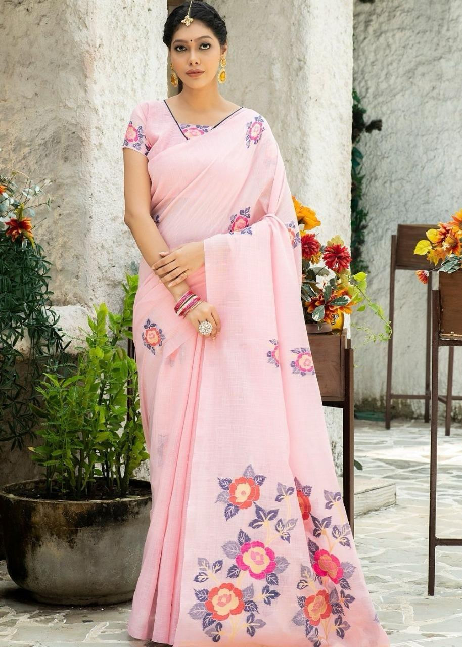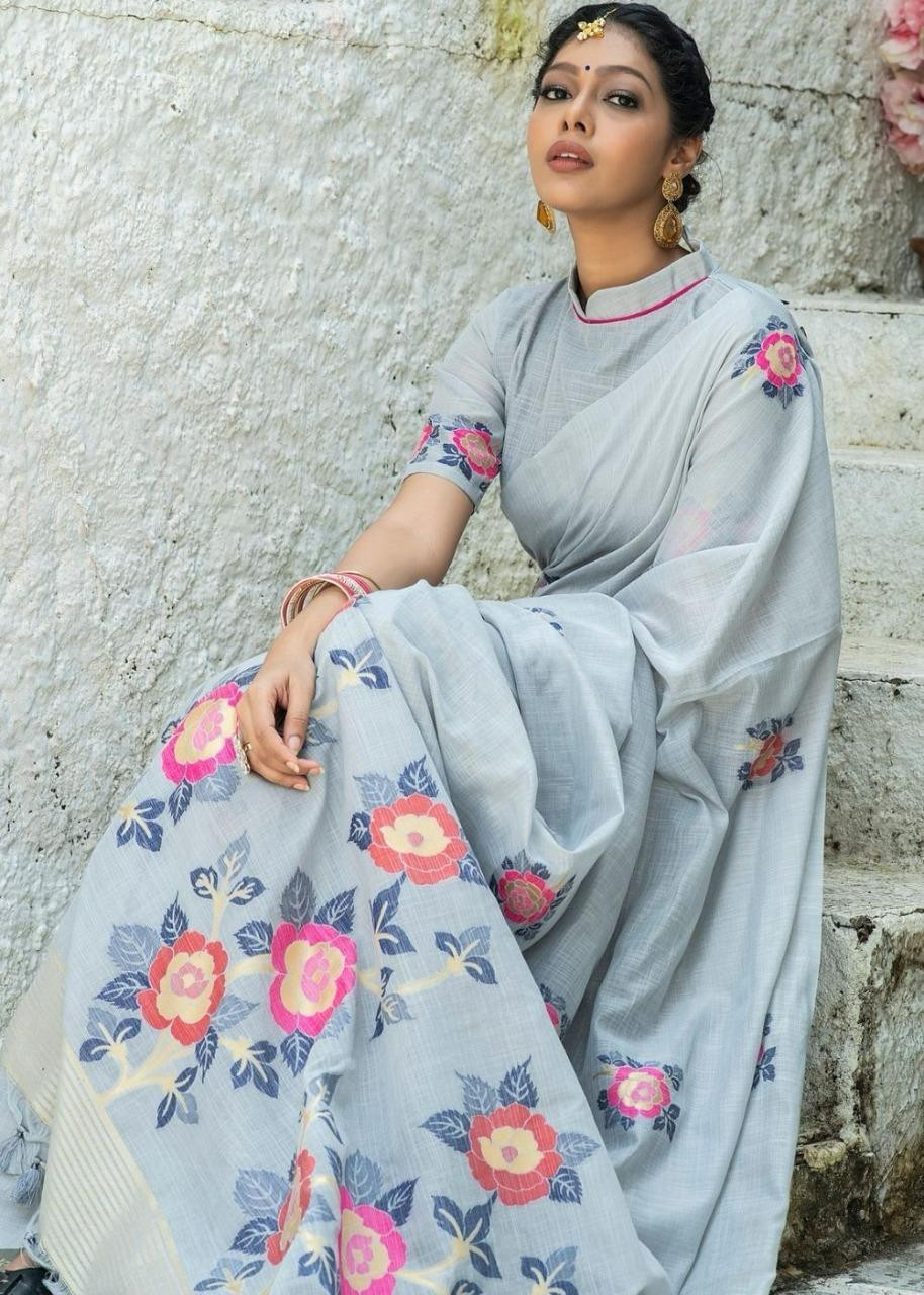 Linen is known to be a breathy fabric, as the colors, motifs and the narration of magical forms create an aura that heals an individual physically and spiritually. Shop the Most Beautiful Summer Special Linen Sarees in Classic Dusty Colors.
