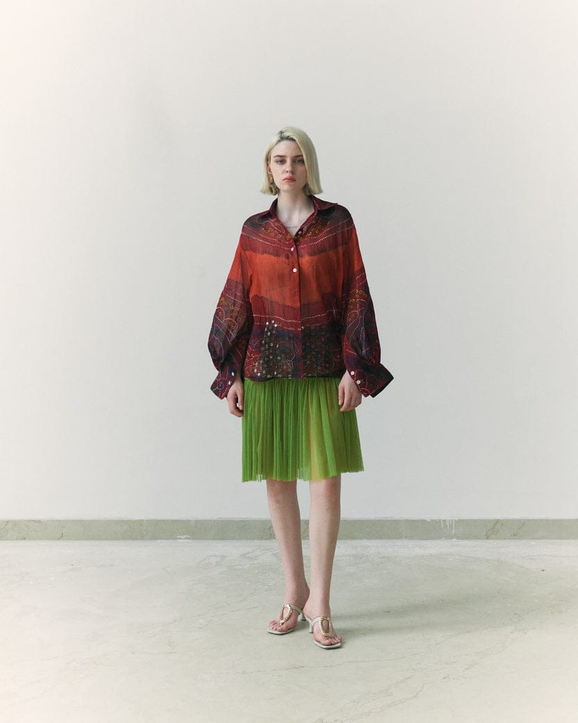 Gathered Pure Cotton Bhandej Odhani Shirt For Women