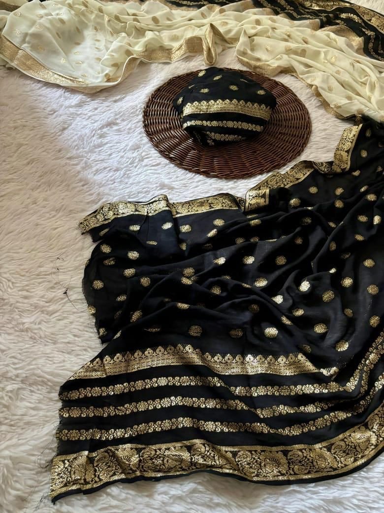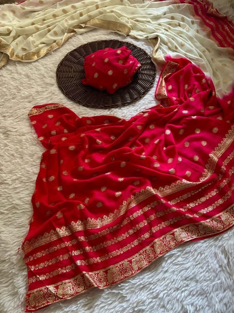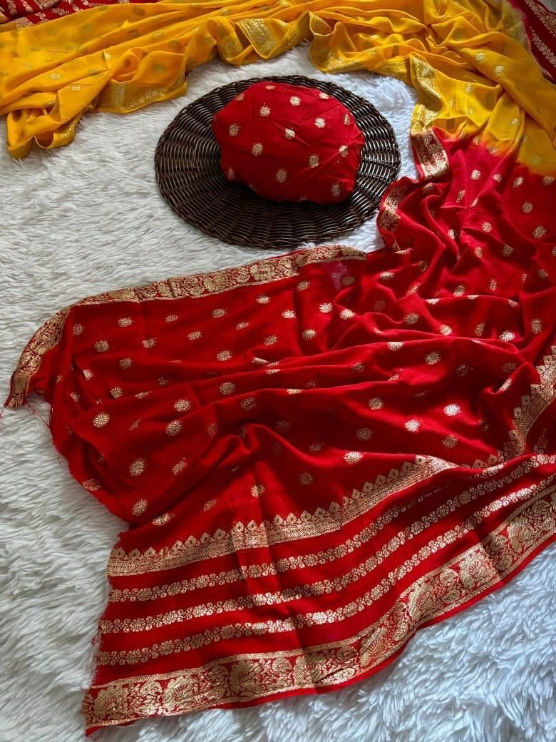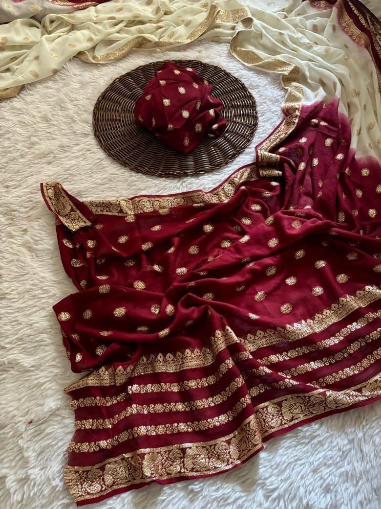 Viscose Weaving Georgette Saree With Pure Jacquard Zari Weaving Blouse