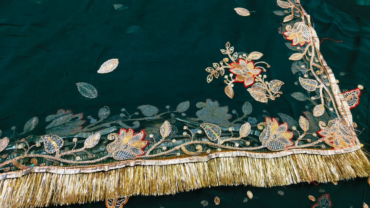 Gota Kiran Complete: Detailed Gota Kiran finishing enhances the traditional beauty and grace of the attire.