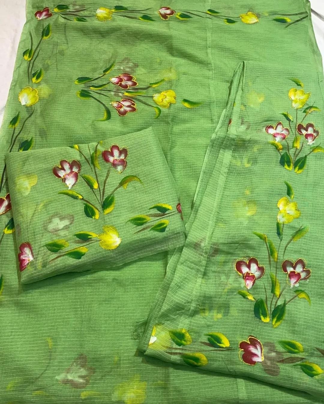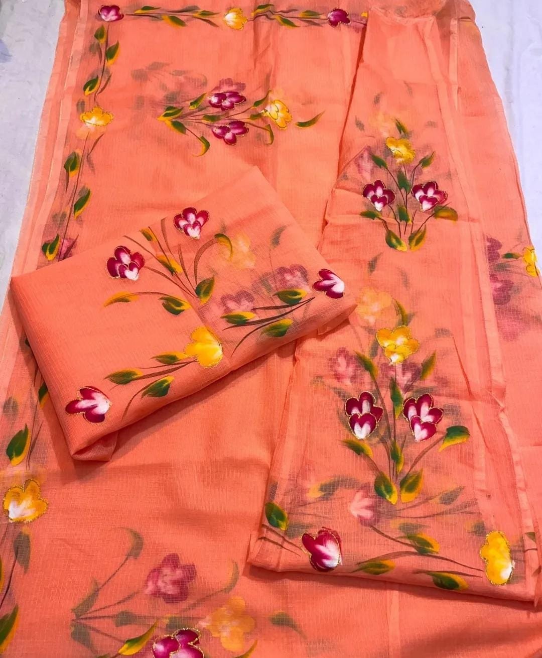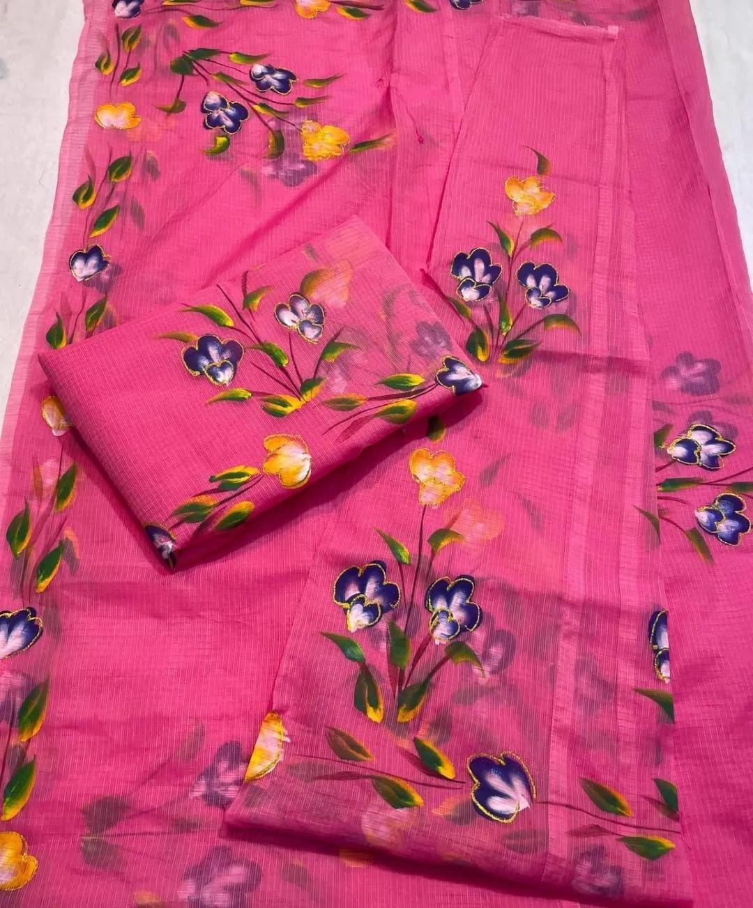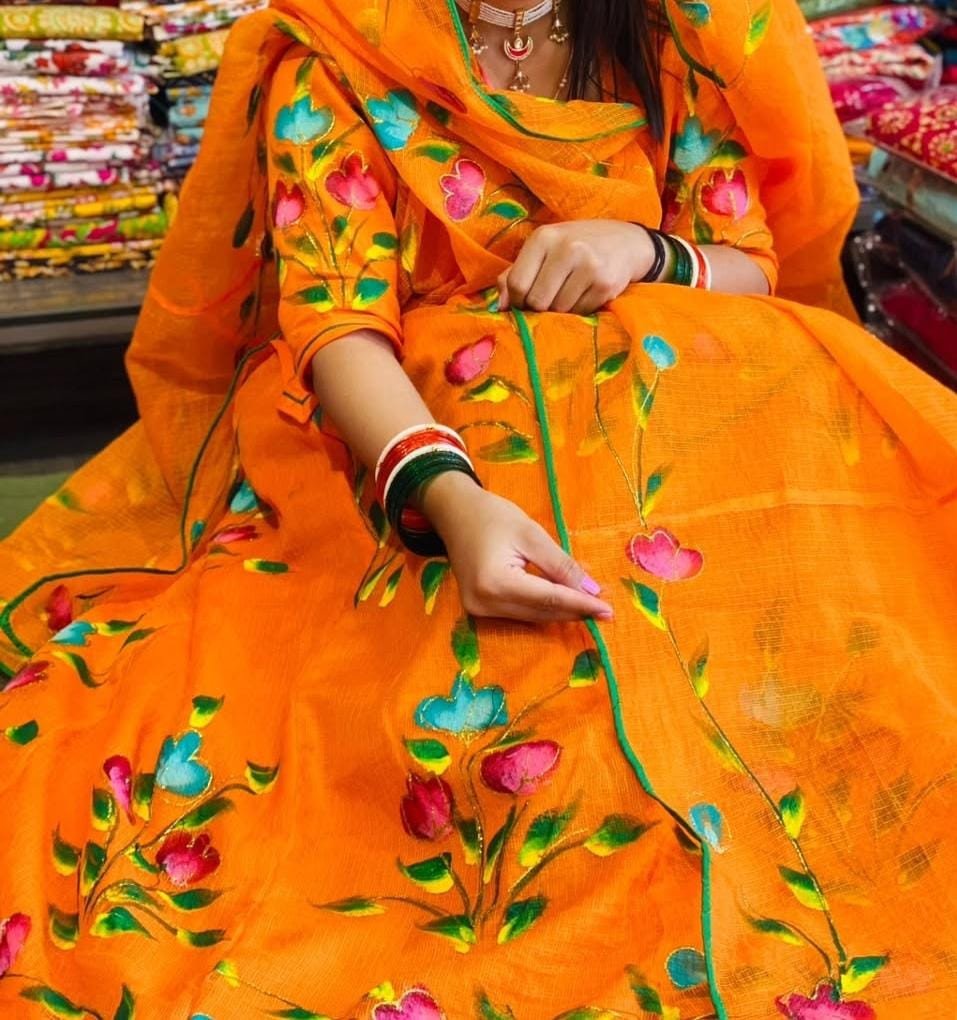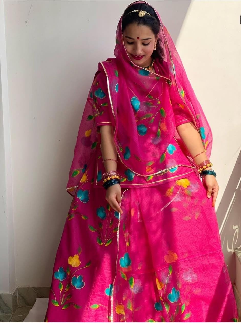 Step into elegance with this most trending Hand-Painted Kota Doriya Poshak, crafted for those who adore timeless Rajasthani tradition with a modern twist. The poshak features a beautifully hand-painted Kota Doriya odhni, adding a delicate charm to the overall ensemble.