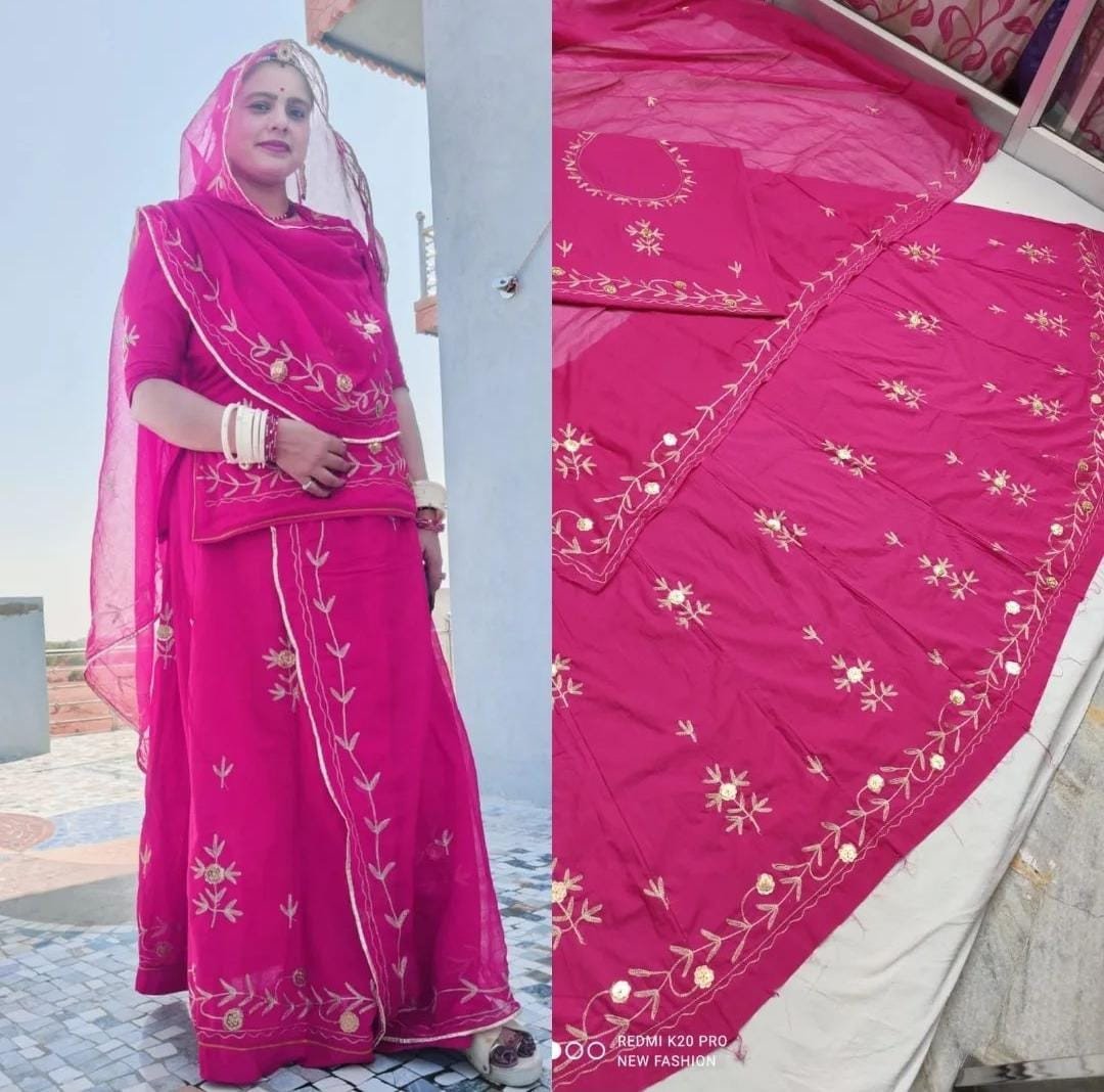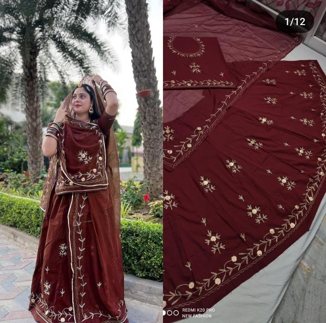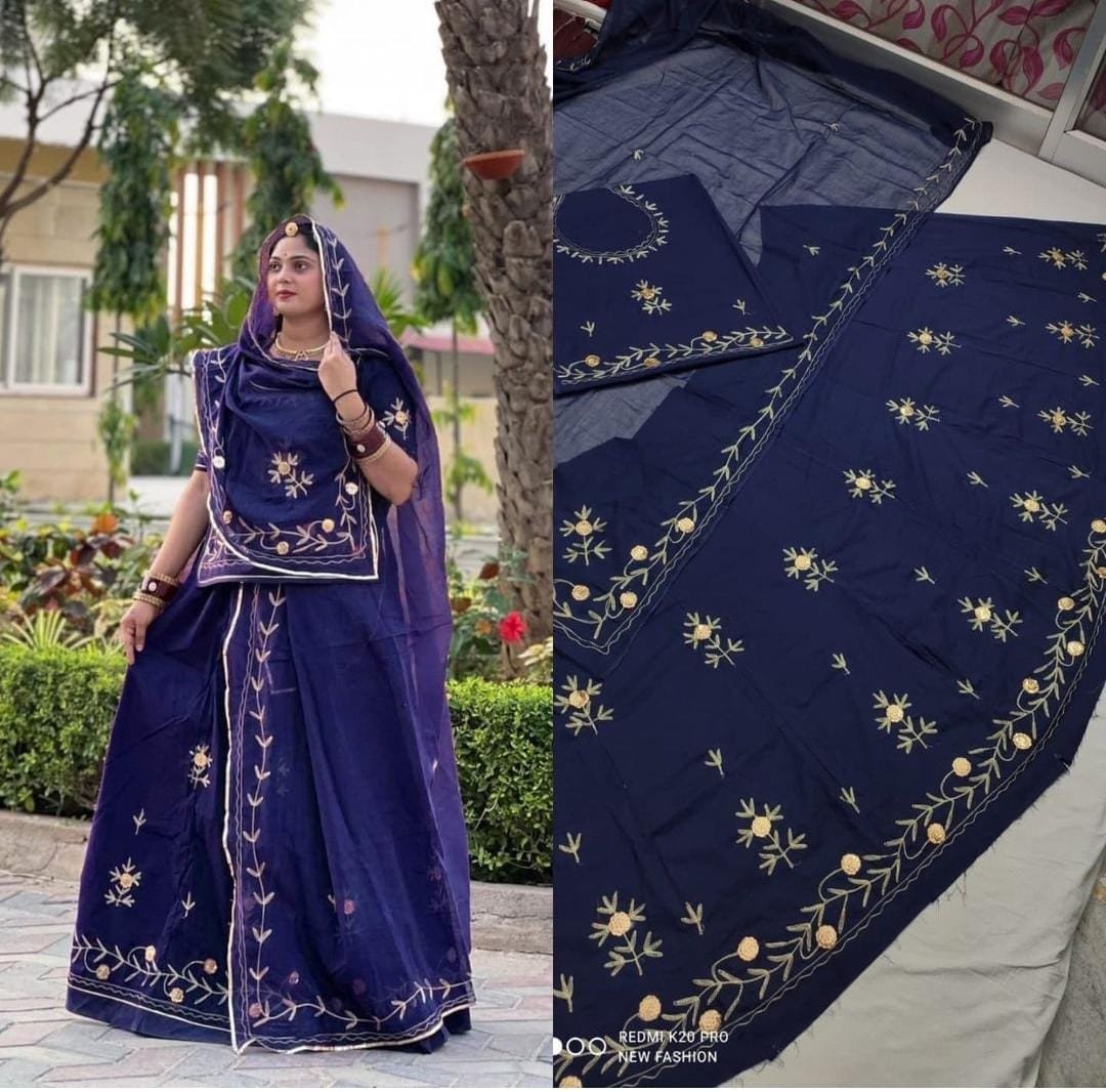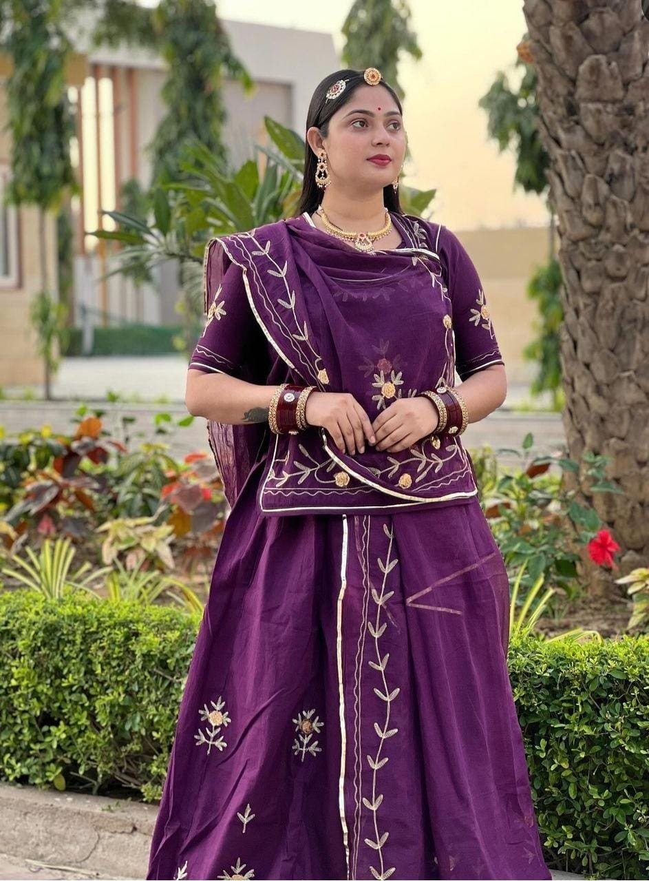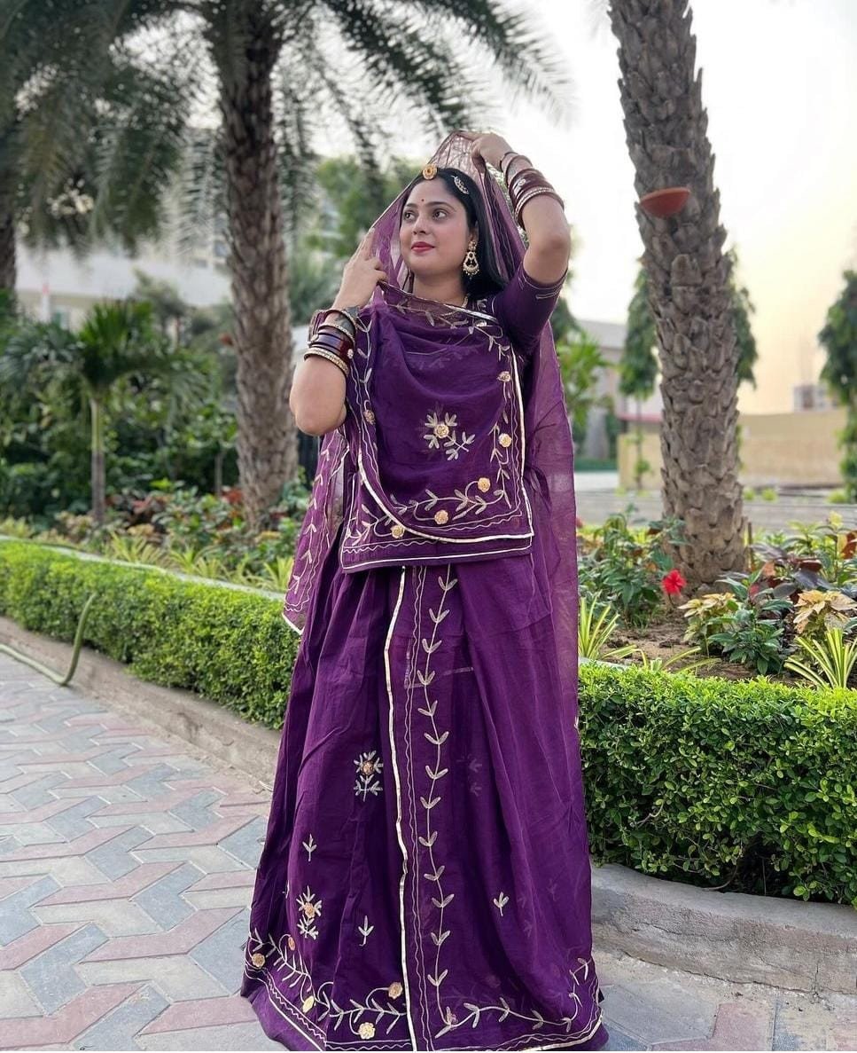 A Cotton Rajputi Suit is a traditional outfit inspired by the royal Rajputana heritage, designed for comfort and elegance. This attire typically combines the rich cultural elements of Rajputi dress with the softness and breathability of cotton fabric, making it perfect for everyday wear as well as special occasions in warmer climates.