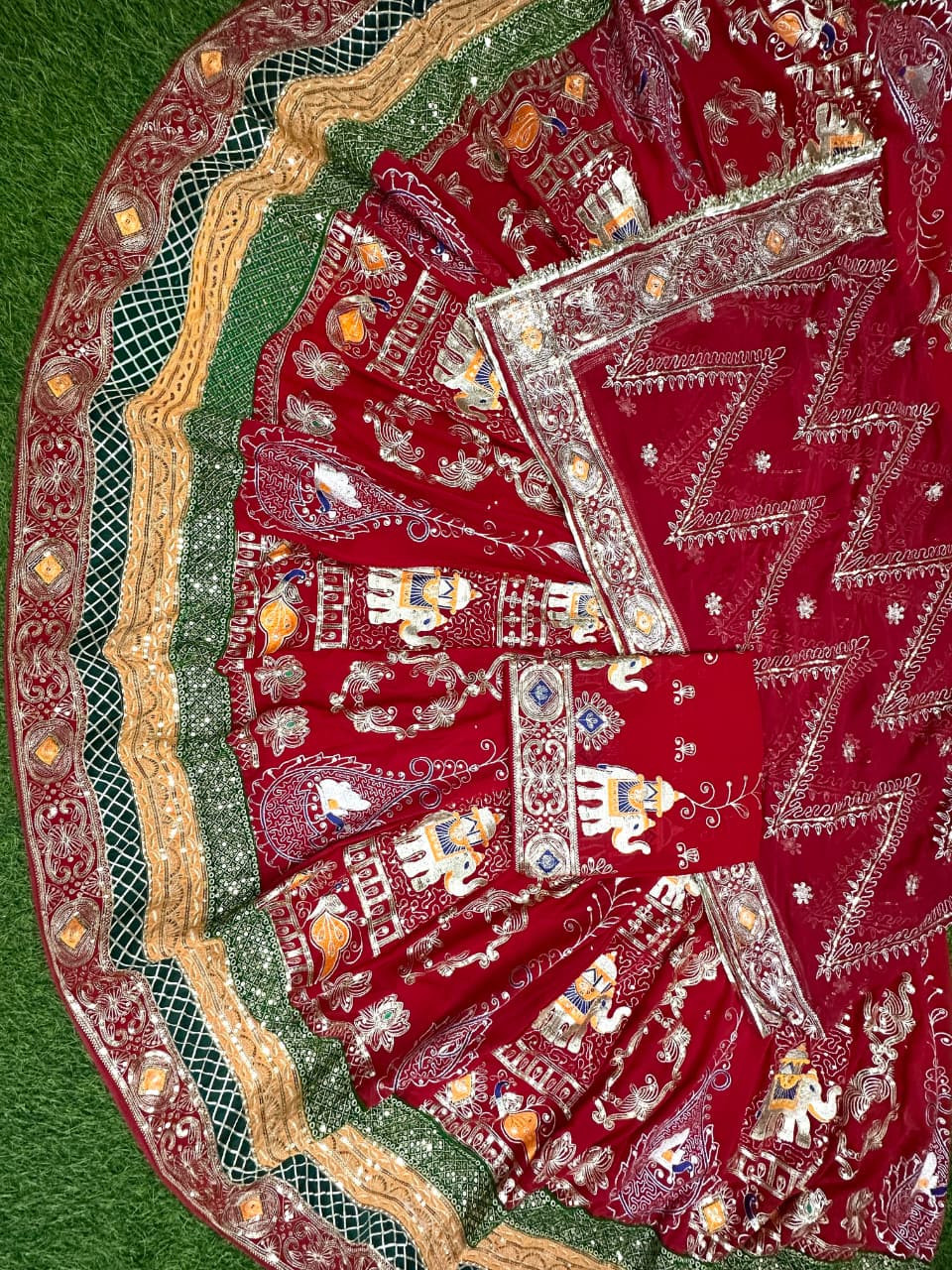 Premium Quality Gorgette Fabric with Royal pure Odhani
