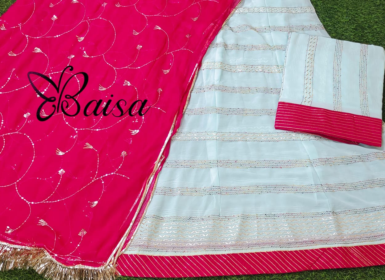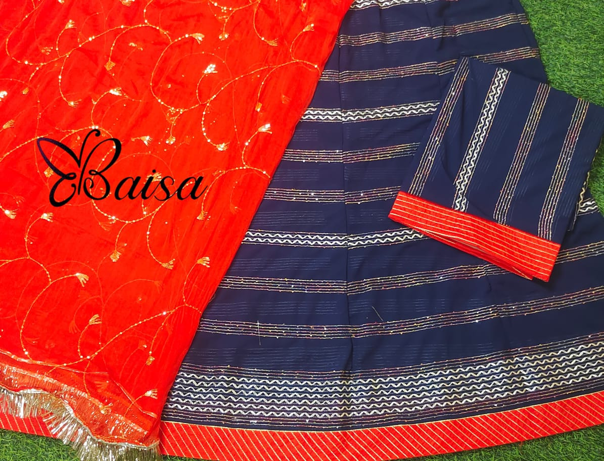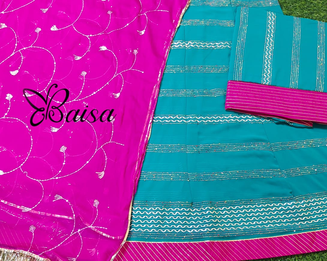 A Georgette Rajputi Poshak is a beautiful fusion of the traditional Rajputi attire with the delicate, flowy texture of georgette fabric. The Rajputi Poshak is a classic and regal Rajasthani garment worn by women for festive occasions, weddings, and cultural celebrations. When made from georgette, it gives the outfit a modern twist while still retaining the royal essence of the traditional design.