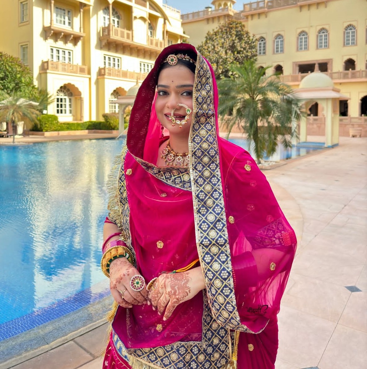 Elevate your wardrobe with the timeless beauty and cultural significance of our "Royal Crimson" velvet poshak, a tribute to tradition and a symbol of elegance.