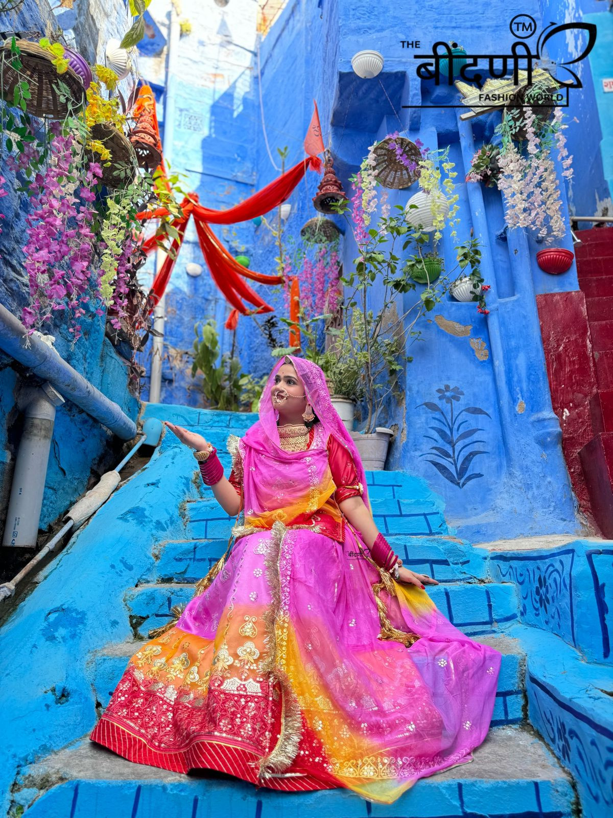 The organza Rajputi poshak is a traditional attire worn by women in Rajasthan, especially during special occasions and festivals. Made from lightweight, sheer organza fabric, this poshak often features vibrant colors and intricate embellishments like embroidery, mirror work, and lace.