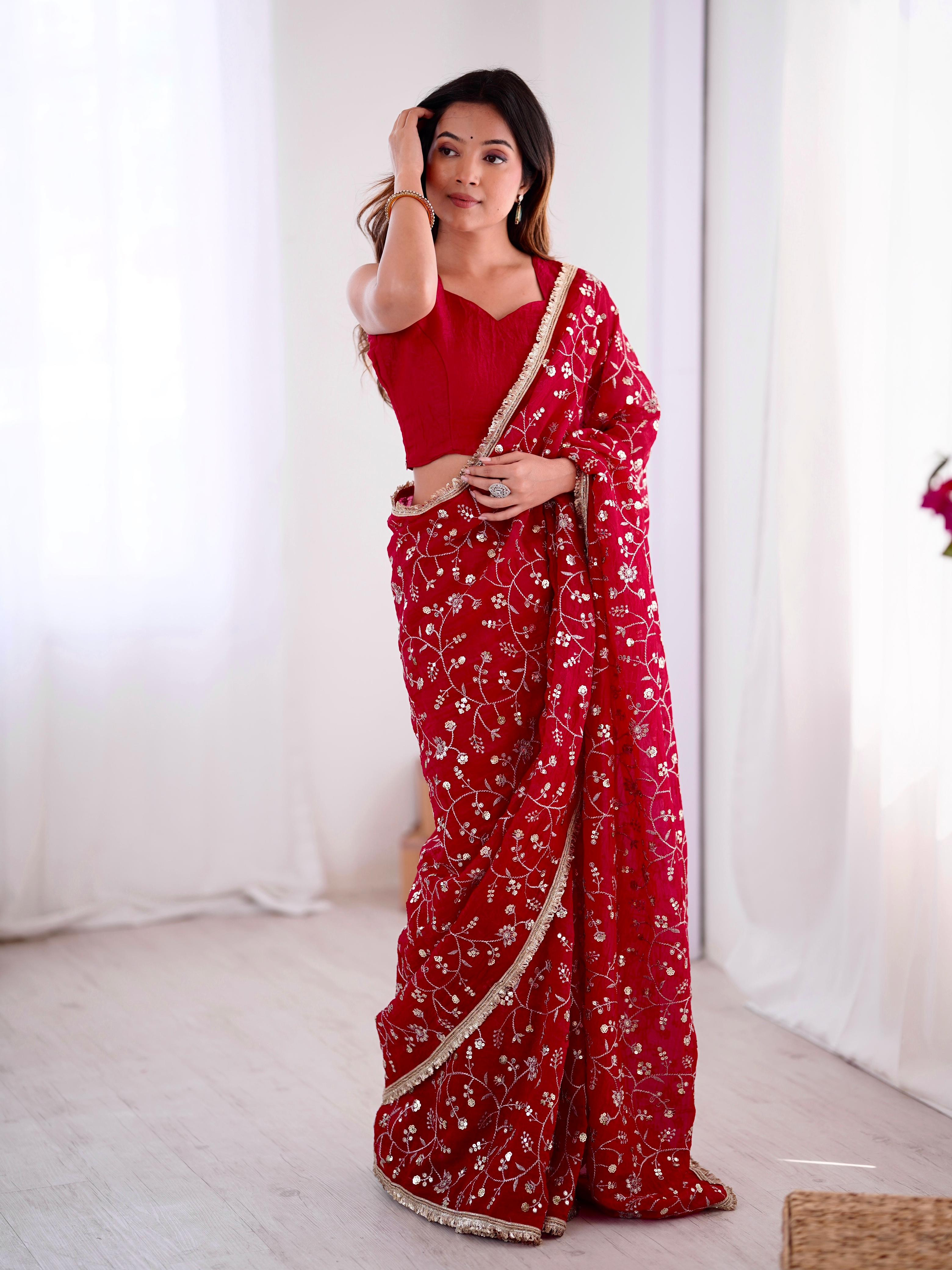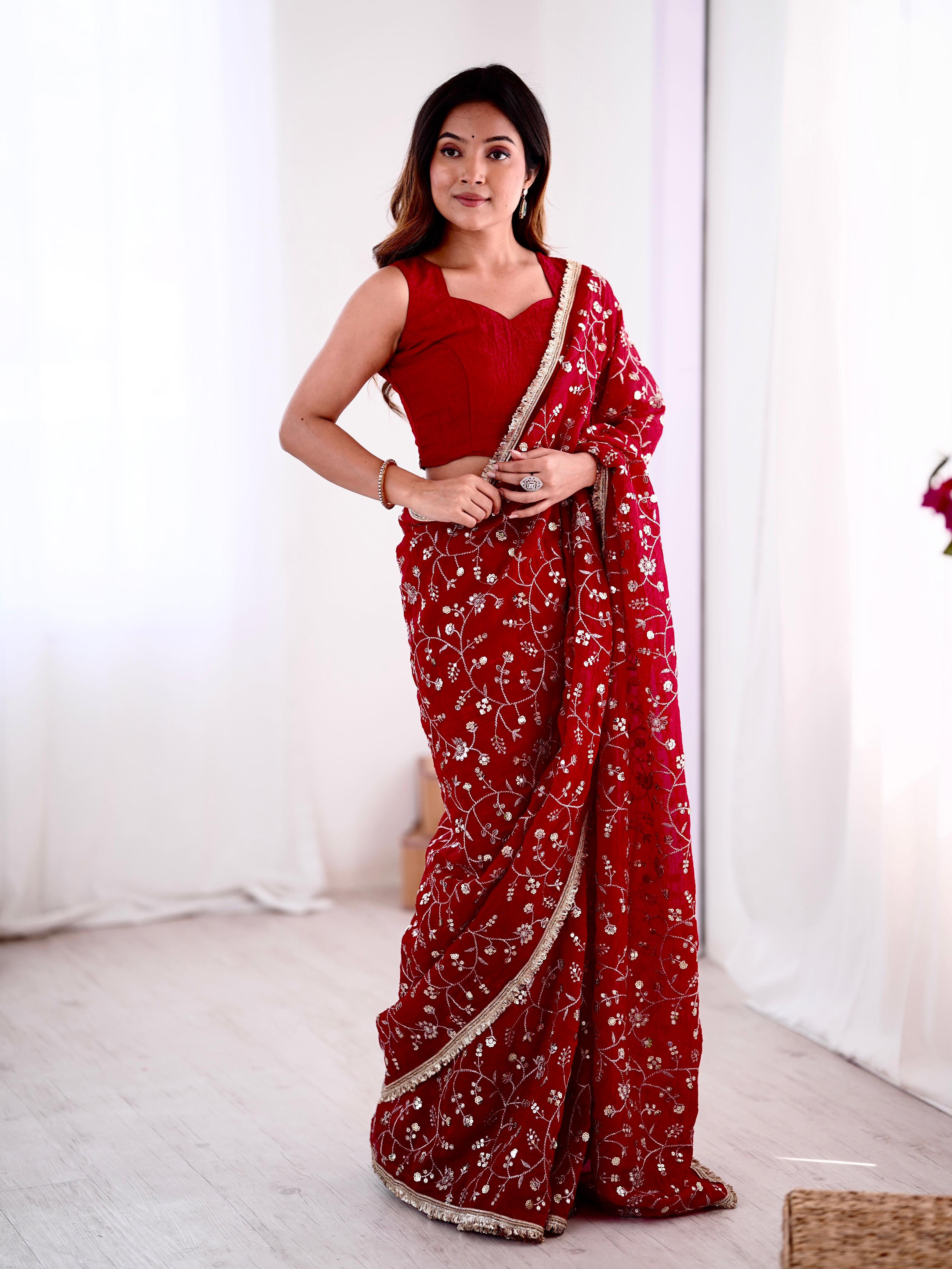 Looking some one for this same colour beautiful Designer Saree on Crunchy Silk Fabric with Sequnce work and blouse on also Crunchy Silk Fabric.