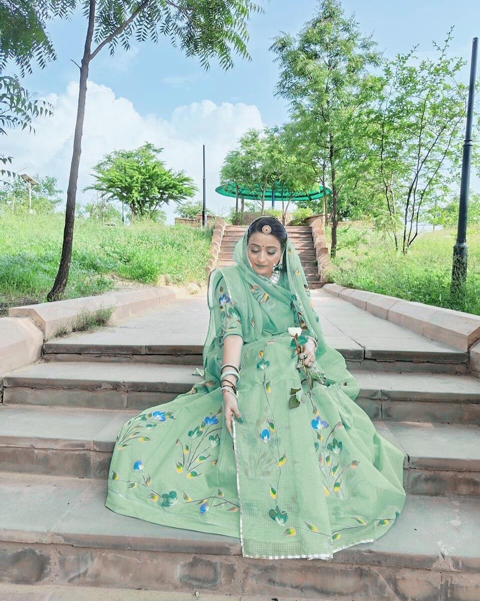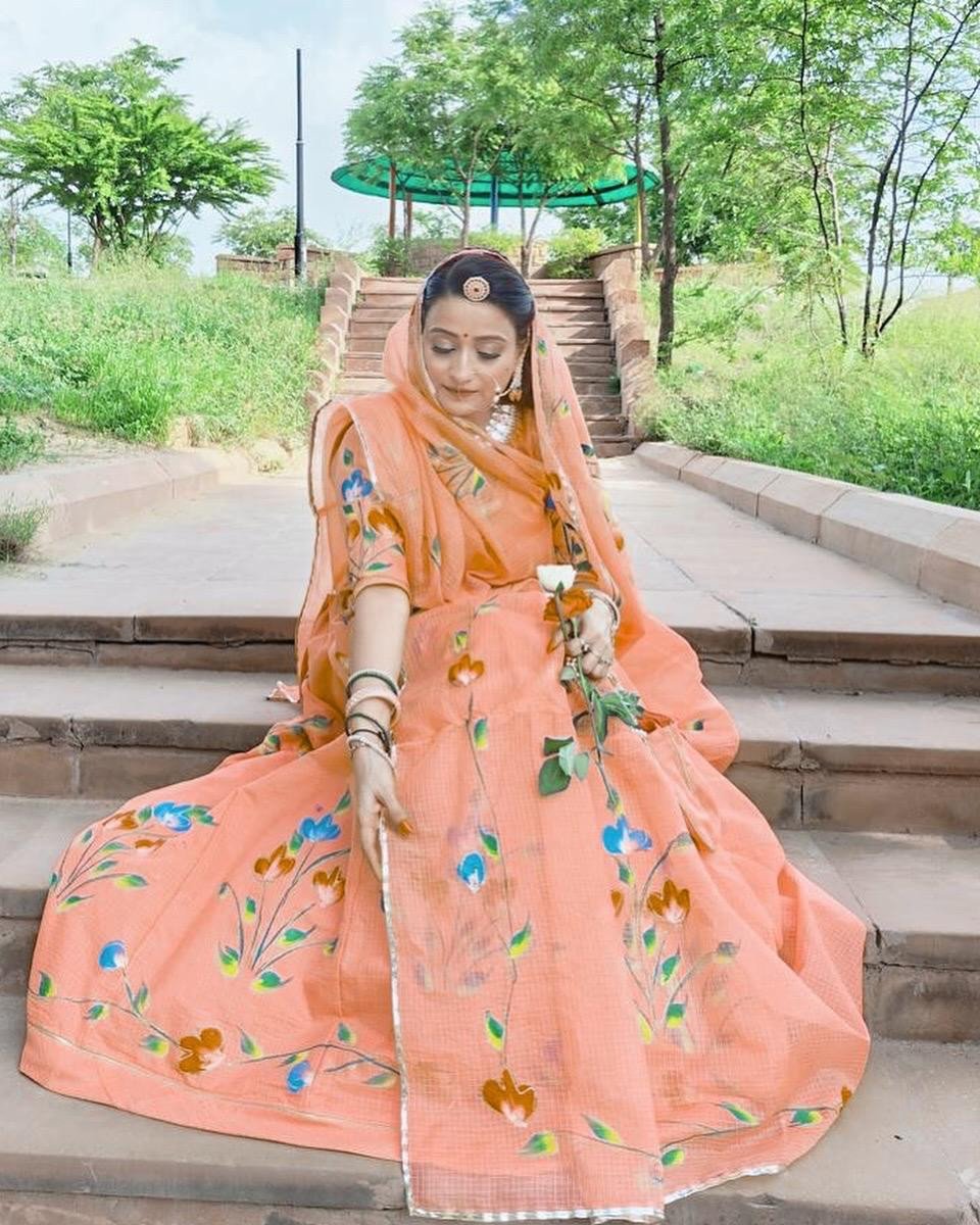 Step into royalty with this beautifully crafted Kota Doriya Rajputi Suit, featuring a stunning heavy brush print enhanced with subtle shiner accents for a rich, graceful look. The Kurti comes with elegant front design and astin (sleeve) detailing, ensuring a blend of traditional charm and modern flair. Complemented by a 2.50-meter Kota Doriya odhna, adorned with a four-side intricate border, this ensemble is perfect for festive occasions, traditional gatherings, and cultural celebrations.