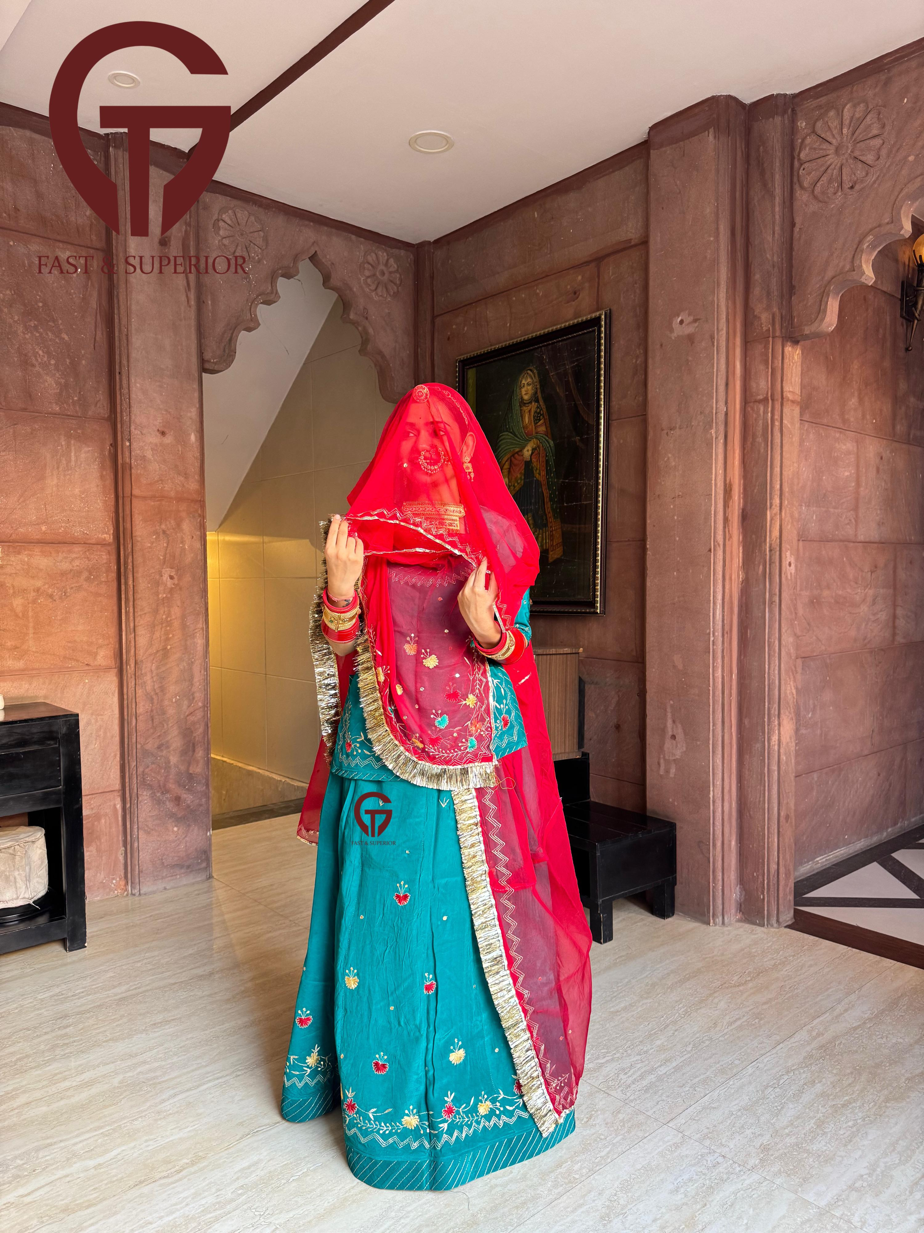 Odhna Fabric: Hamrahi pyor odna CANTRAST SPECIAL CHERRY RANI with Aree magi complete