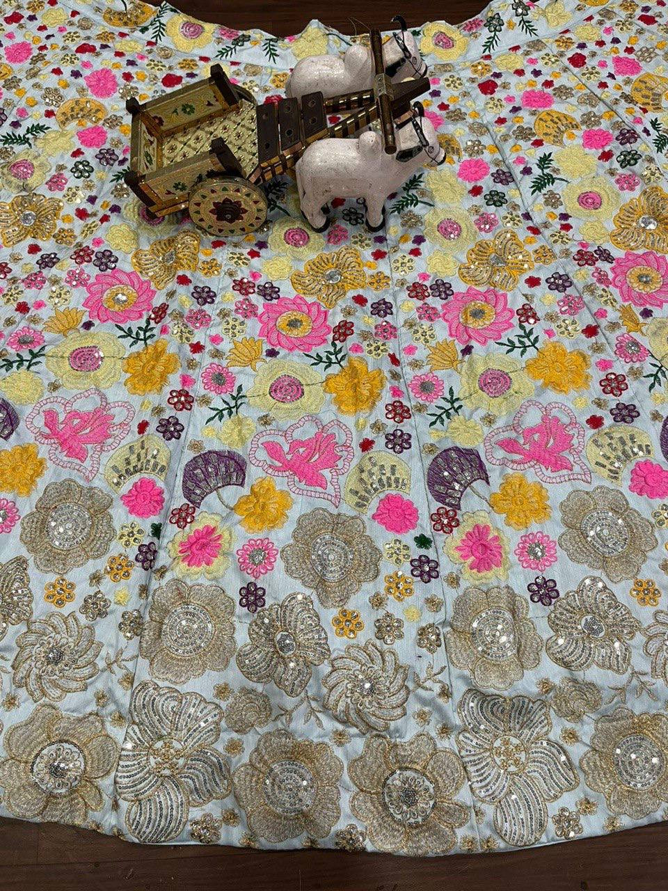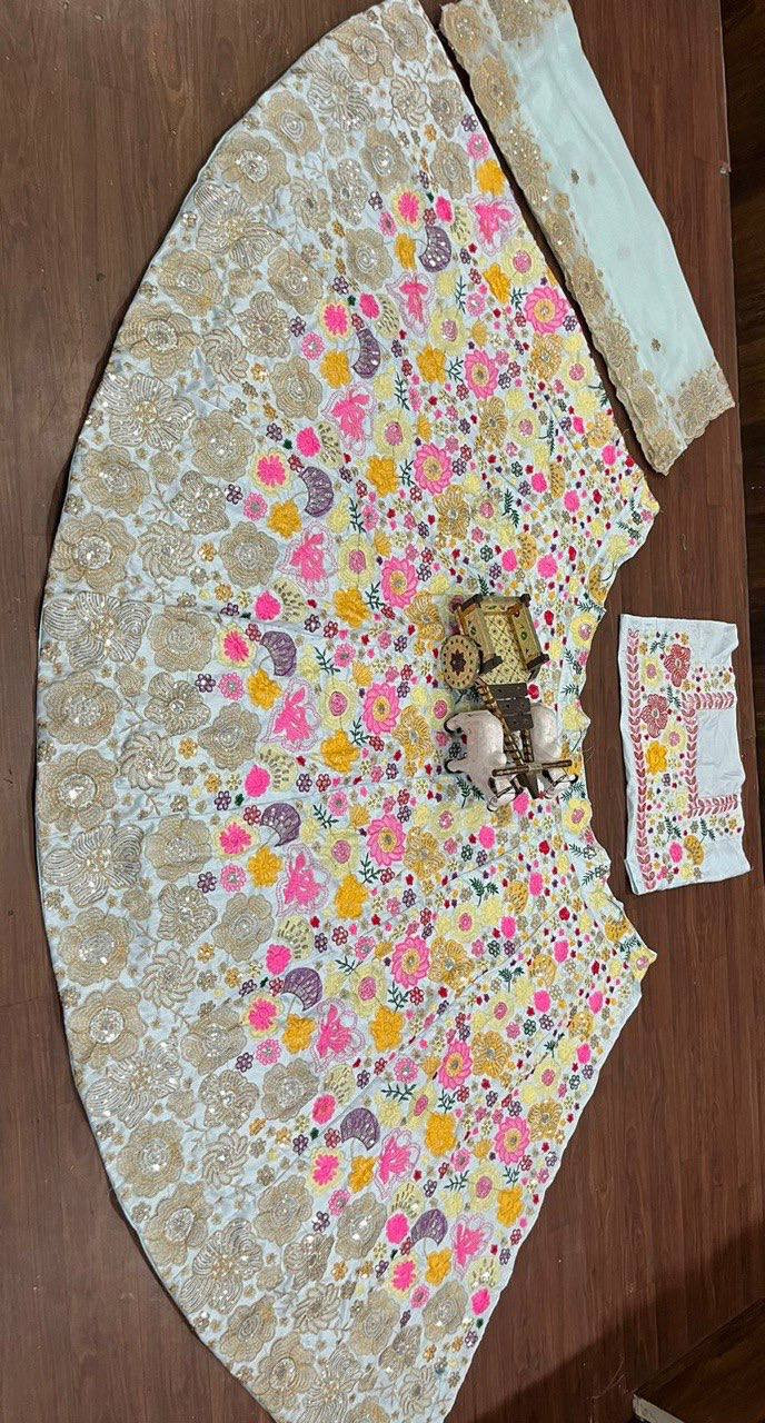 This stunning lehenga set combines elegance with intricate sequin embroidery, perfect for weddings, festive occasions, and special events. The flare and craftsmanship ensure a graceful drape, while the semi-stitched design allows for customized fitting.