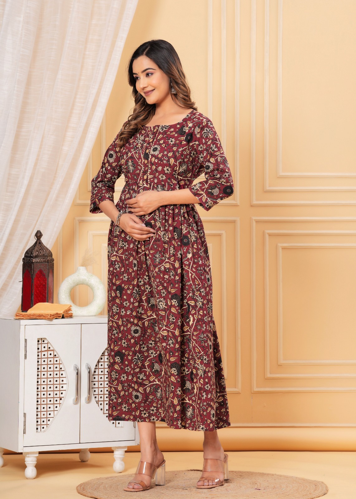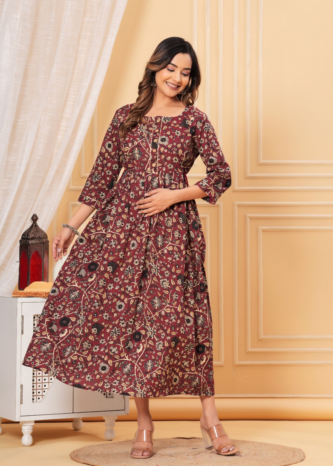 Latest Anarkali Gown Style Western Dress is lightweight, breathable, stretchy & incredibly soft to the skin and keeps you cool all day long. The Feeding top has been designed uniquely plats around tummy area to hide Pre and Post Pregnancy baby bump beautifully.