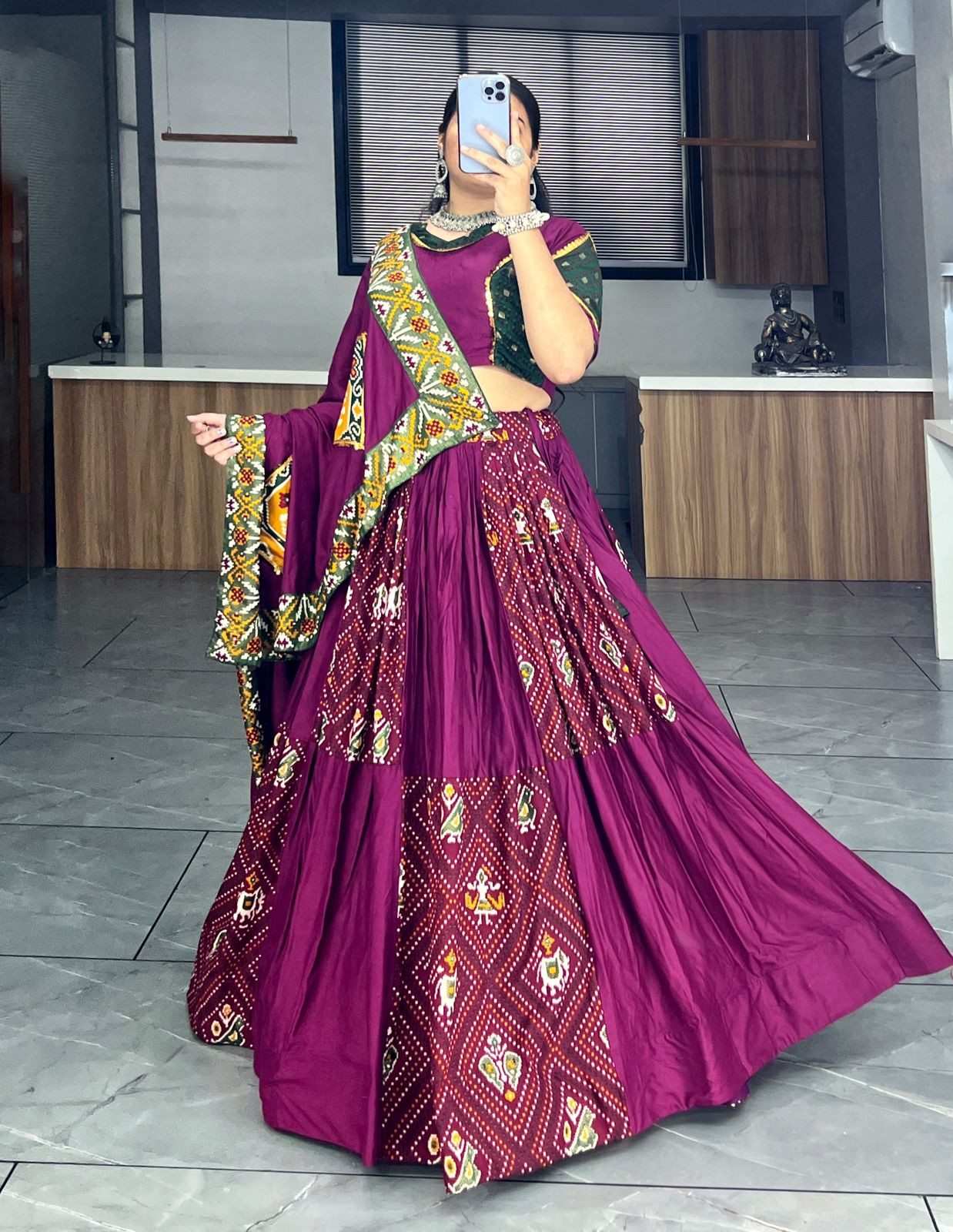 Lehenga Work Plain With Rich Patola Bandhani Print