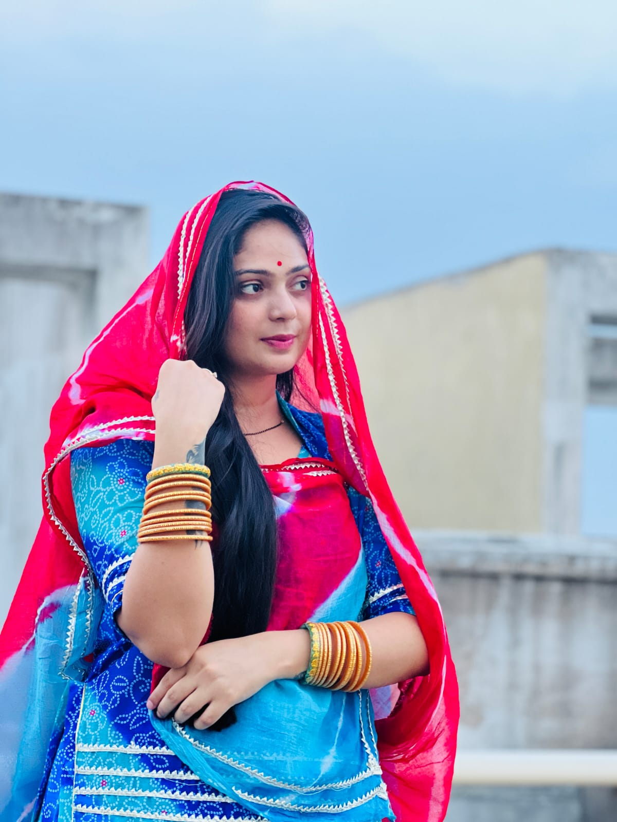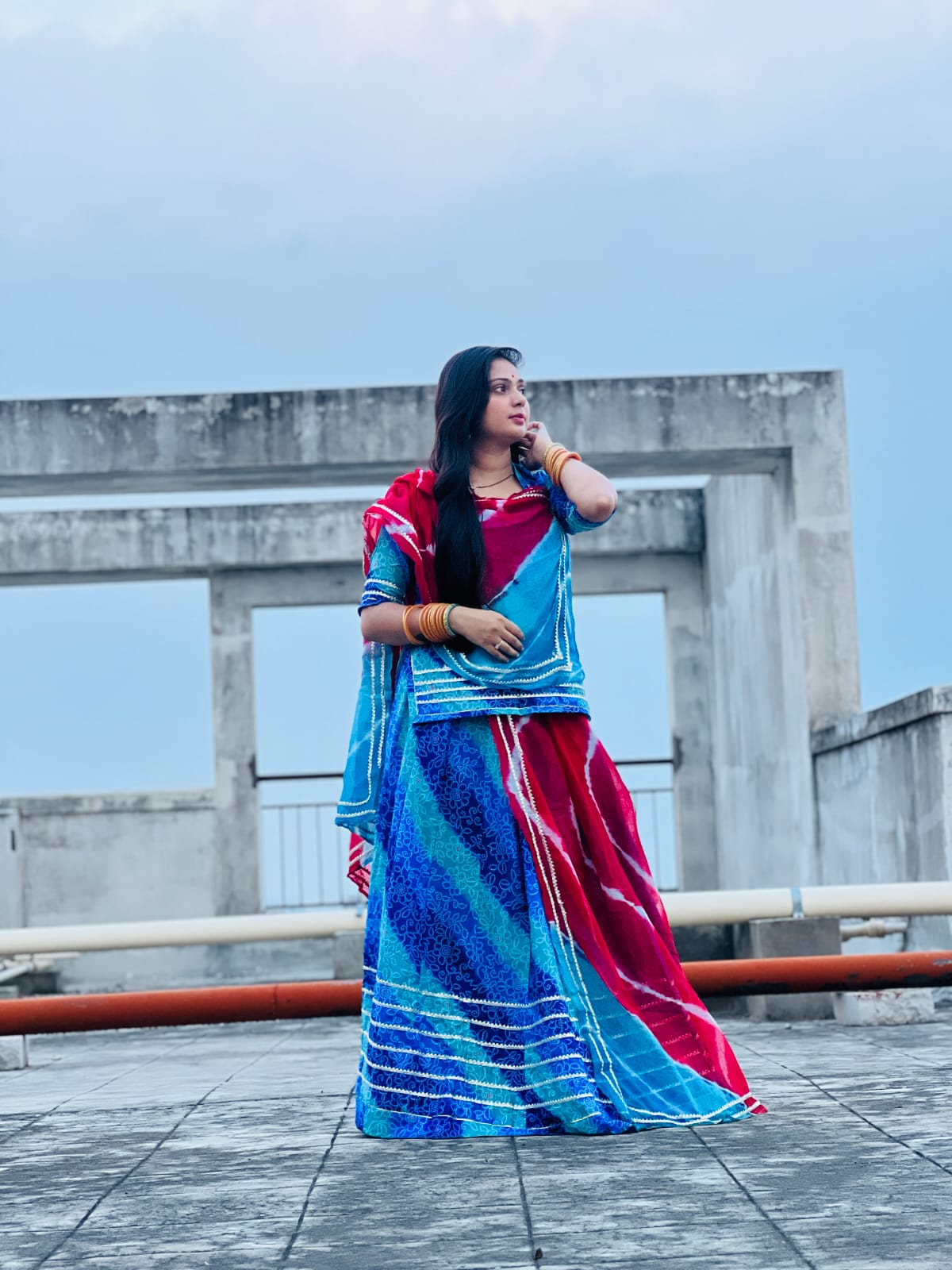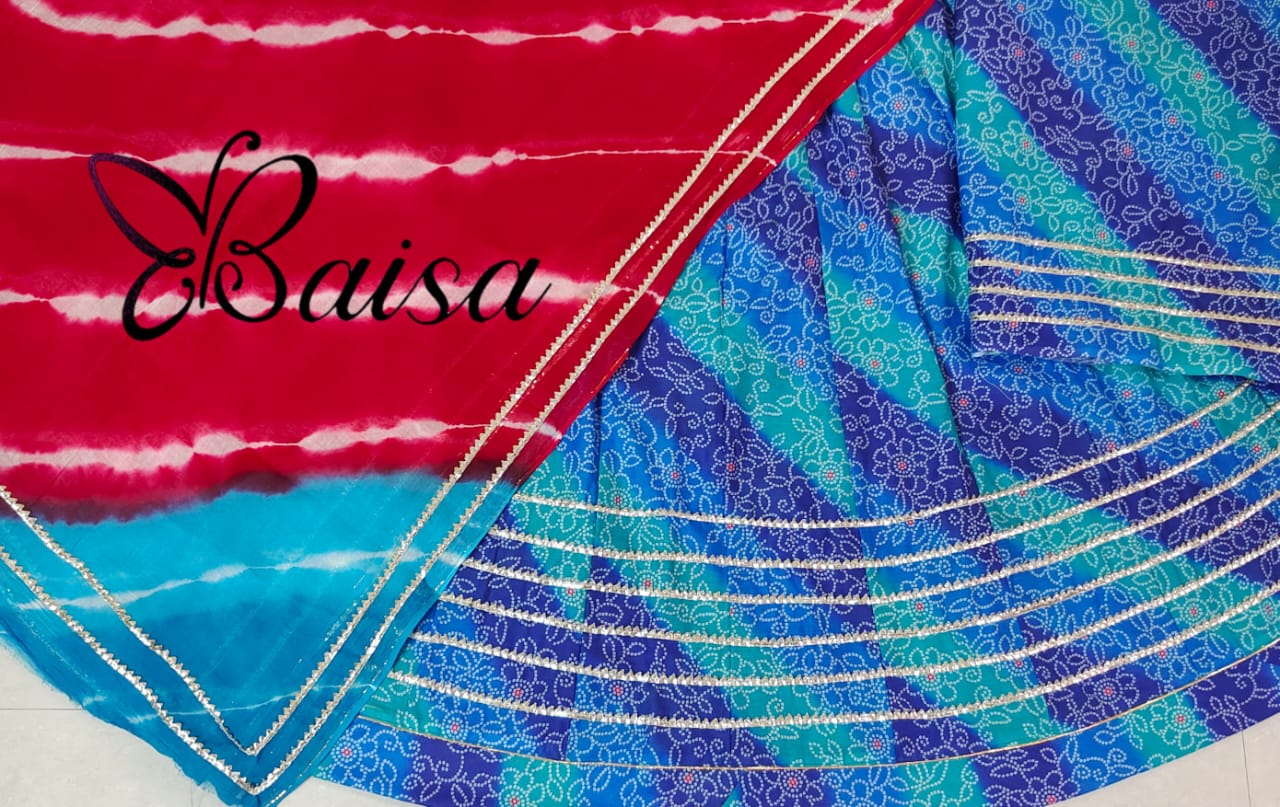 Beautiful Lehariya Cotton Odhna With Gota Lace work