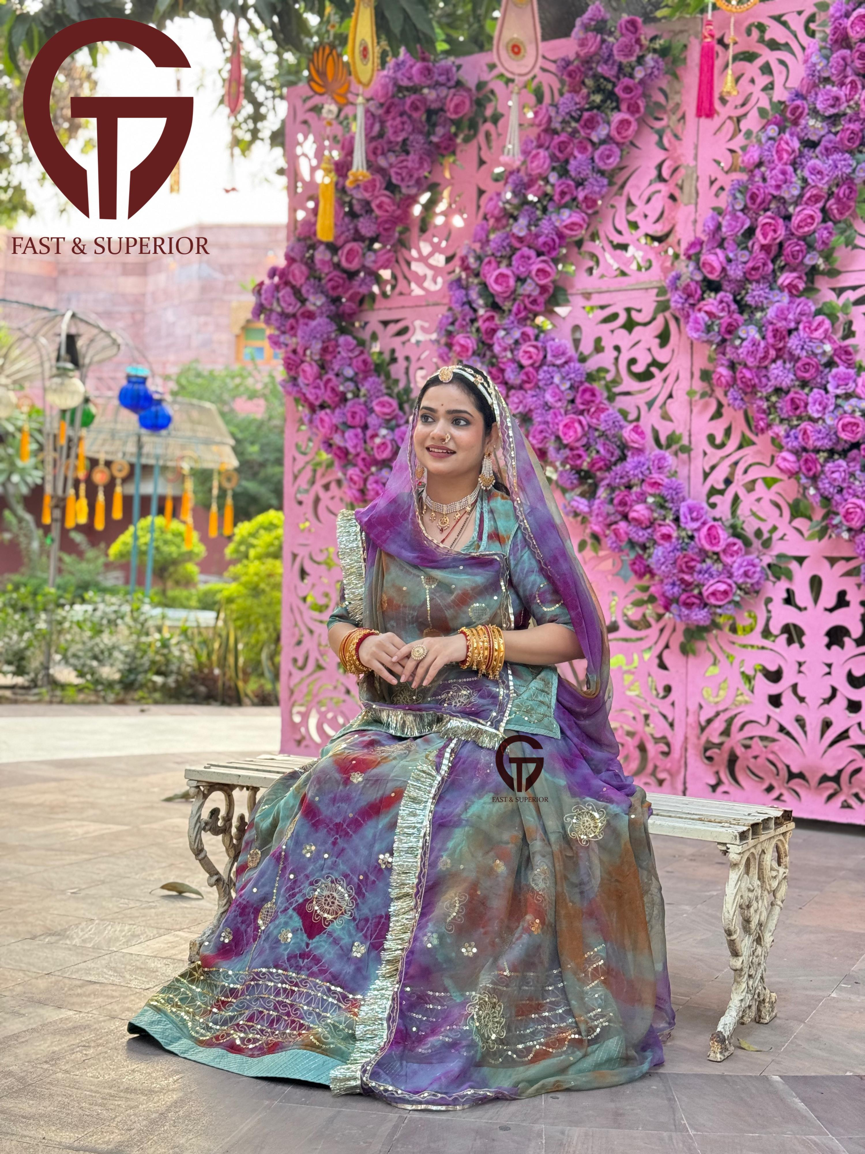 Rajputi Poshak: "Rajputi Poshak" is a traditional attire worn by Rajput women, often during significant cultural events such as weddings. It typically includes a lehenga or long skirt, a choli (blouse), and a dupatta, crafted with rich fabrics and intricate embroidery. The ensemble is known for its regal and royal appeal, often using luxurious materials like silk, velvet, or brocade.