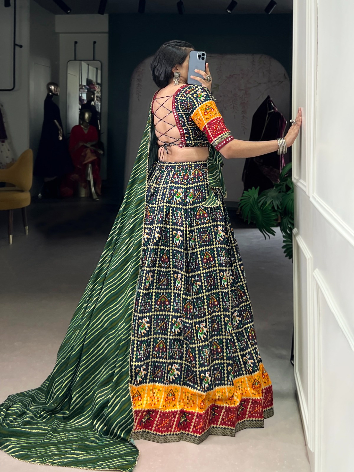 Festival that highlight the colors of life with tradition of indian culture. Here is beautiful chaniyacholi of color combinations with foil print work. ?