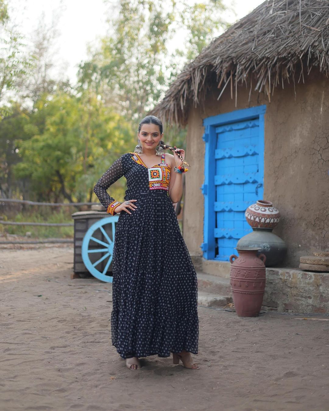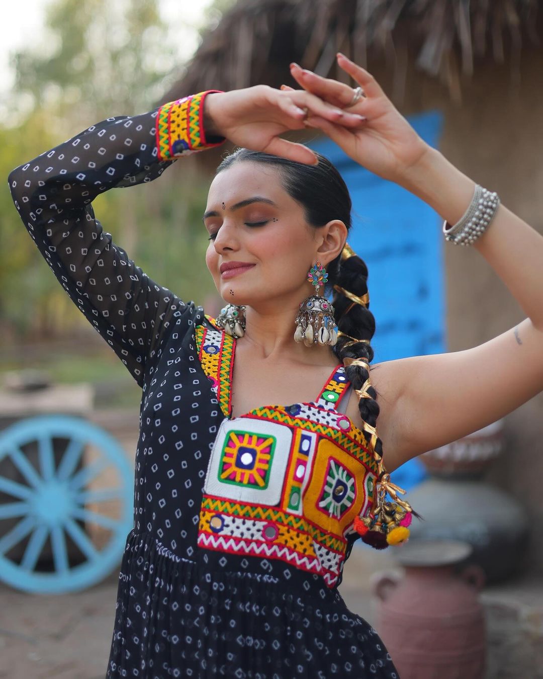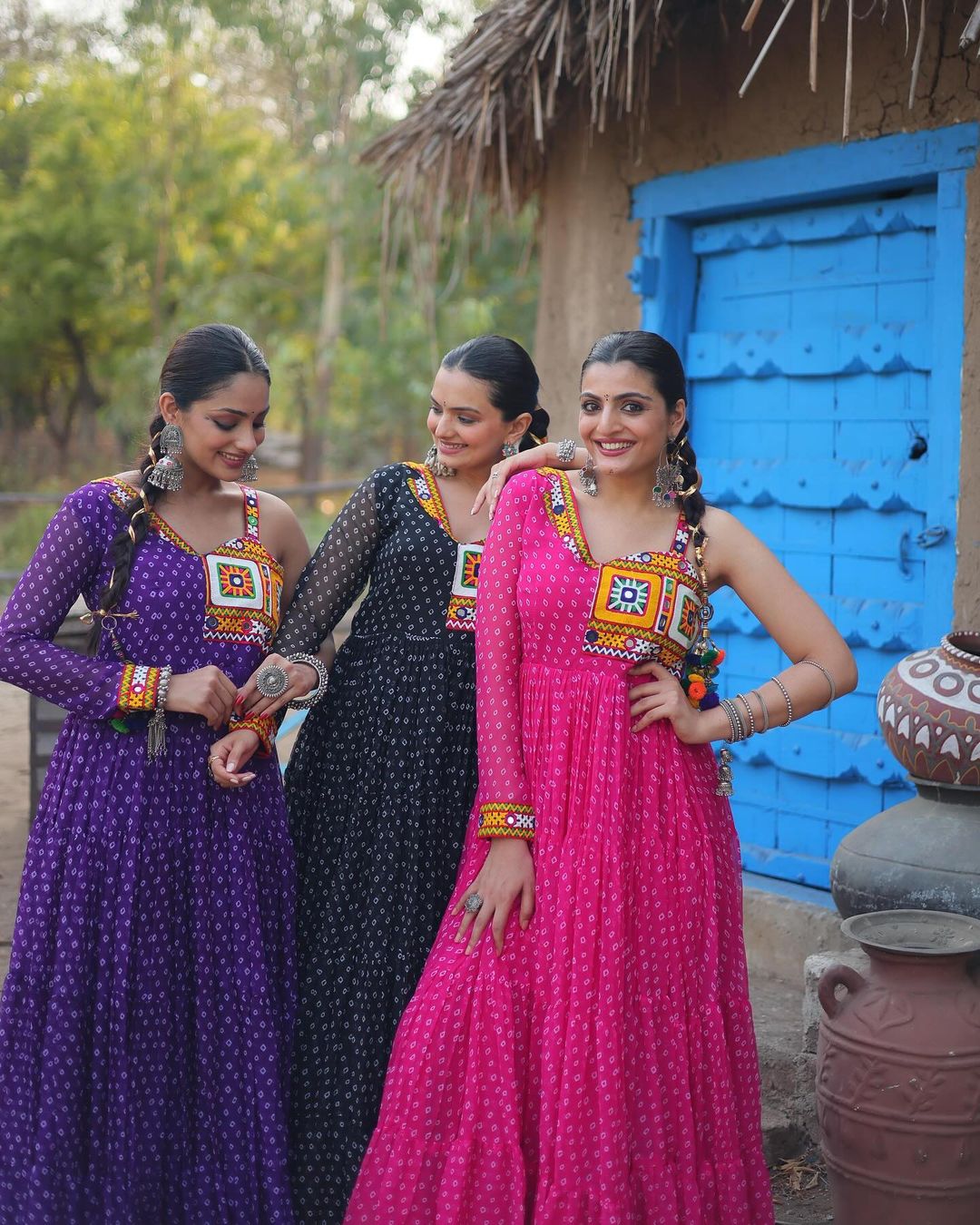 Fabrics & Work :- Bandhani Print work with kutchi patchework in Faux Georgette.