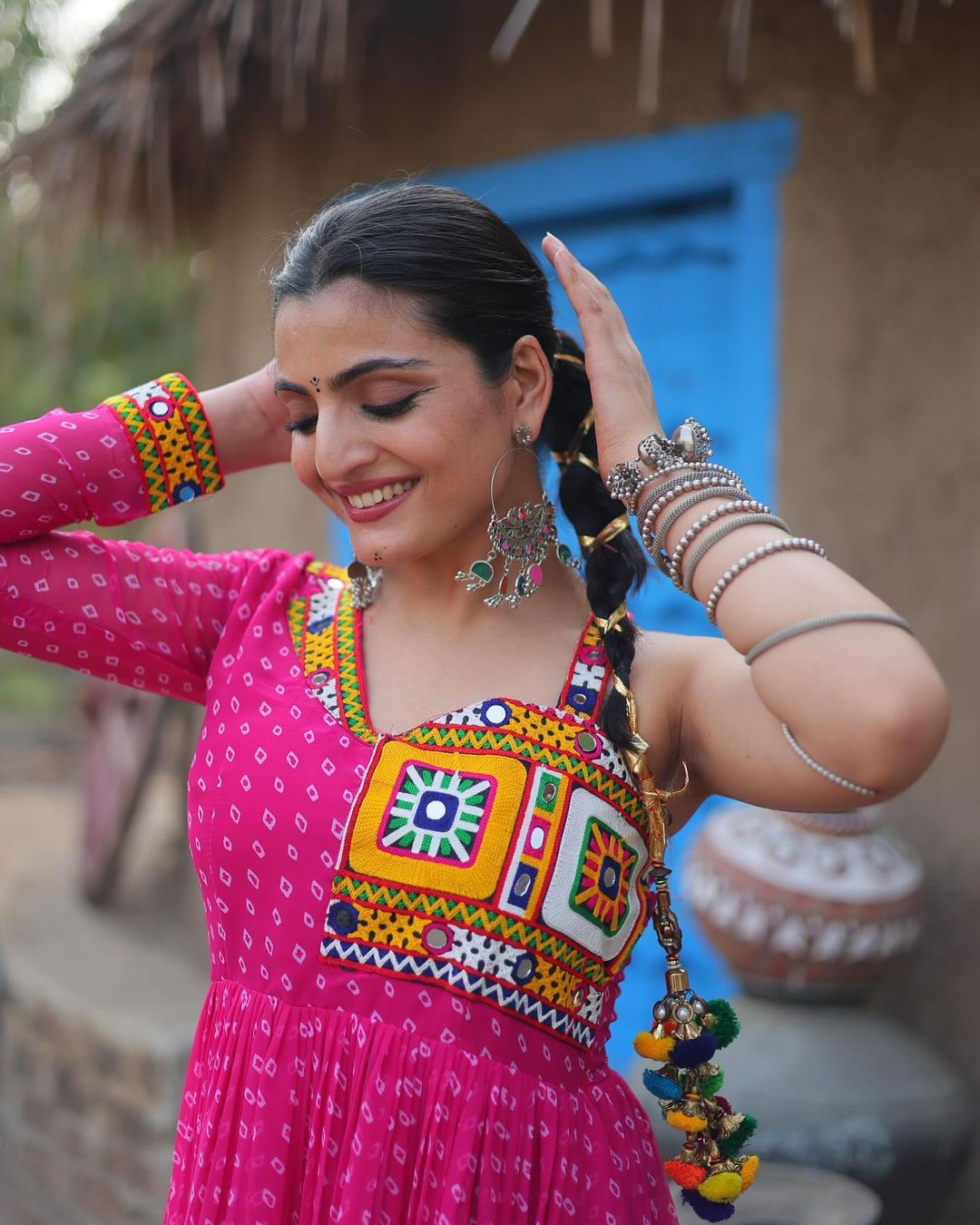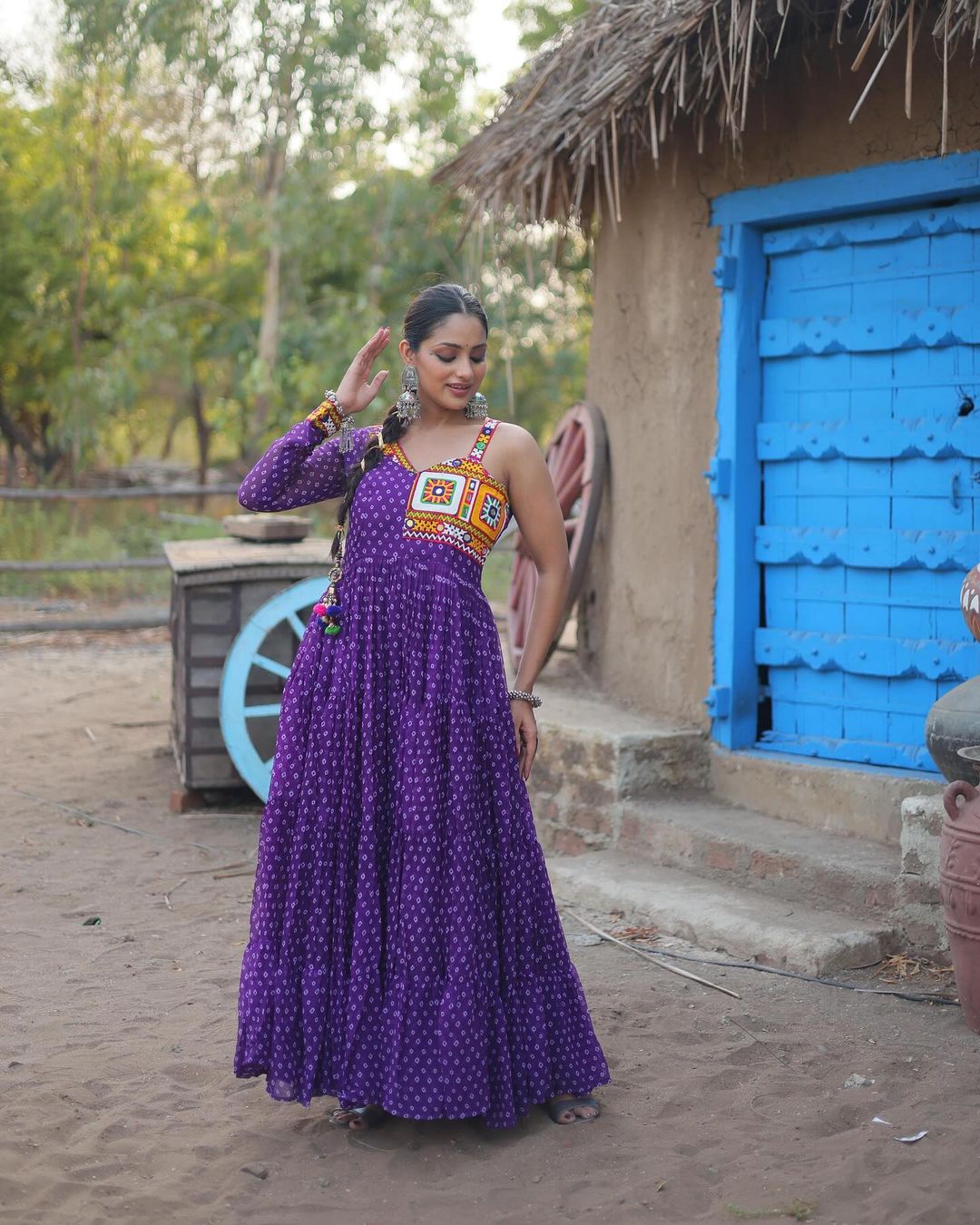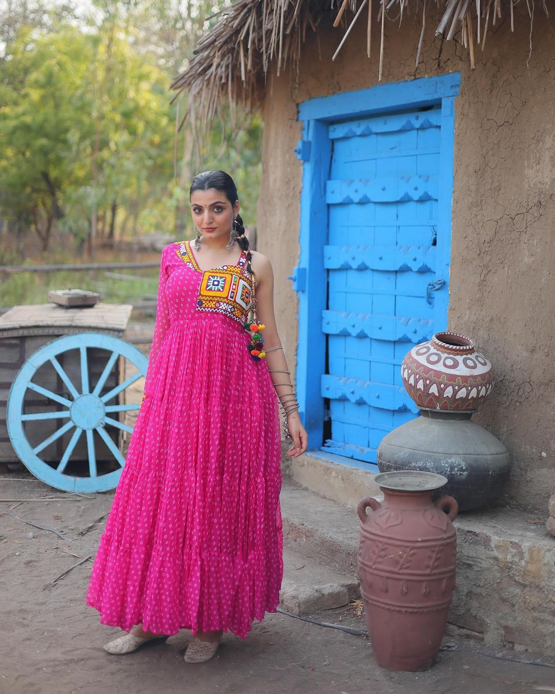 Fabrics & Work :- Bandhani Print work with kutchi patchework in Faux Georgette.