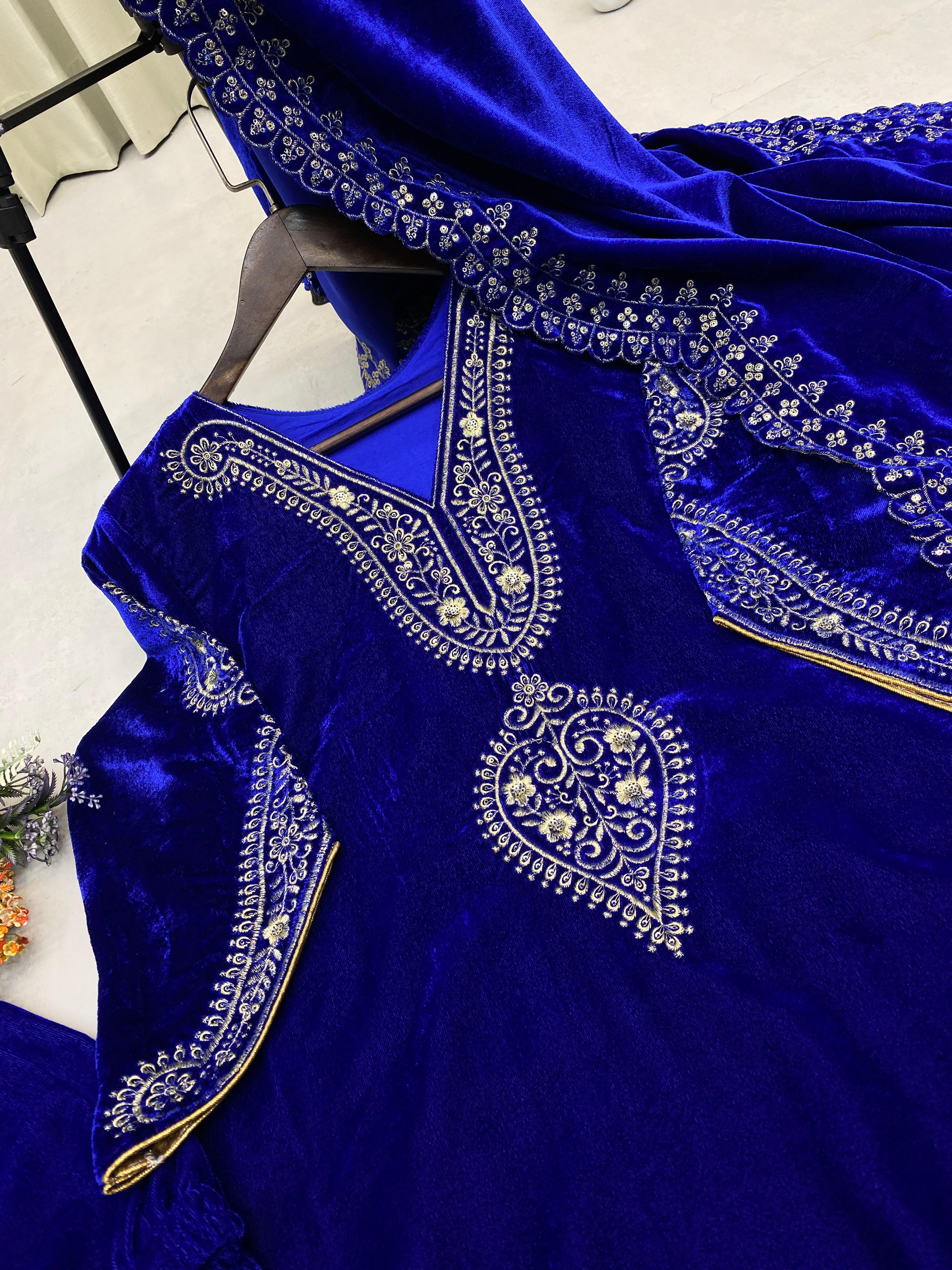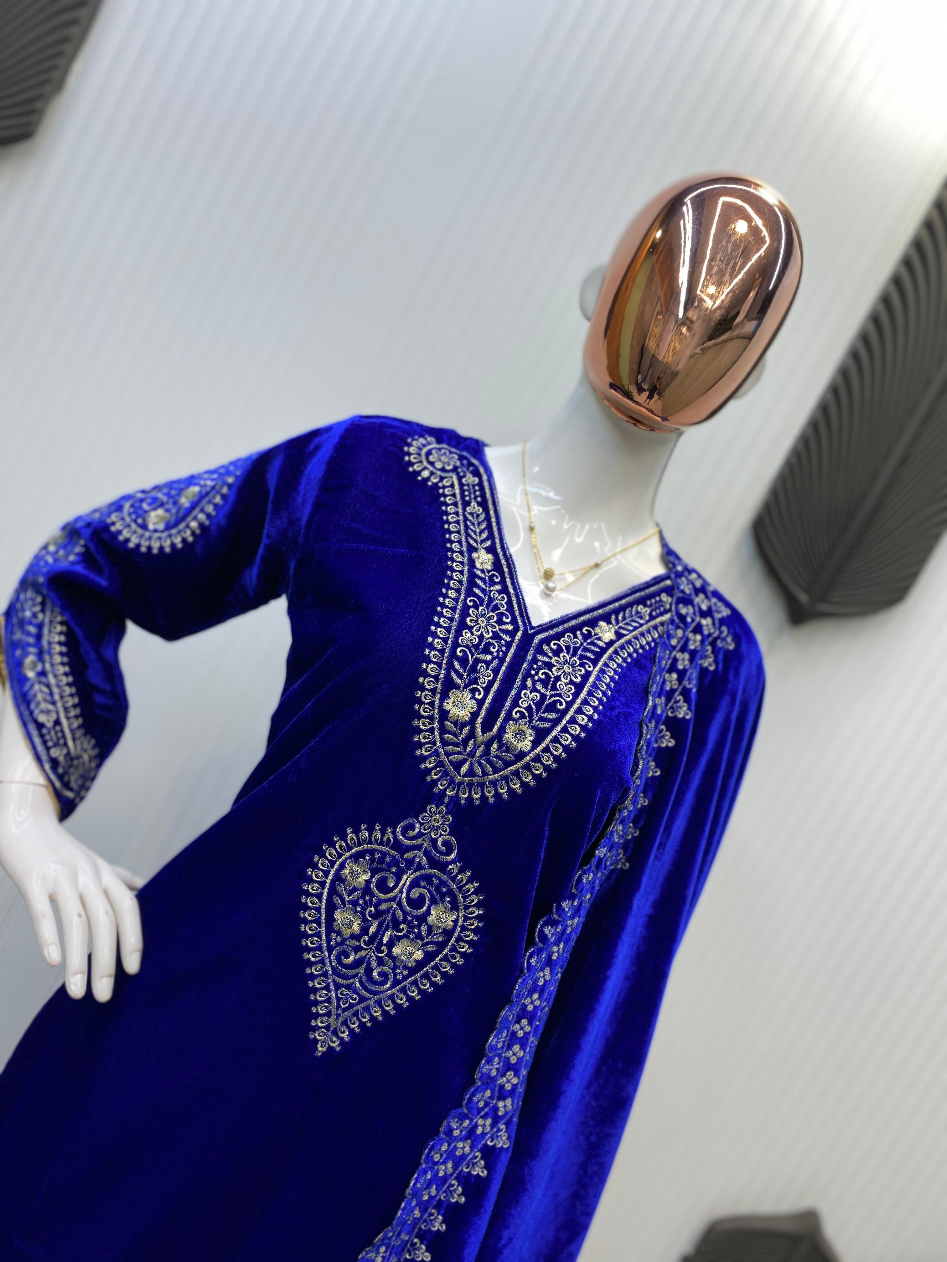 FOR THIS WINTER SEASON OUR NEW DESIGNER STYLE VELVET EMBROIDERY WORK SUIT PANT WITH DUPATT