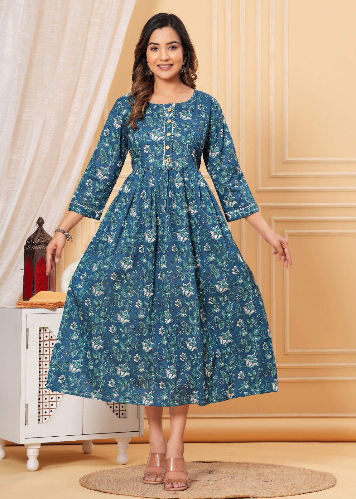 Latest Anarkali Gown Style Western Dress is lightweight, breathable, stretchy & incredibly soft to the skin and keeps you cool all day long. The Feeding top has been designed uniquely plats around tummy area to hide Pre and Post Pregnancy baby bump beautifully.