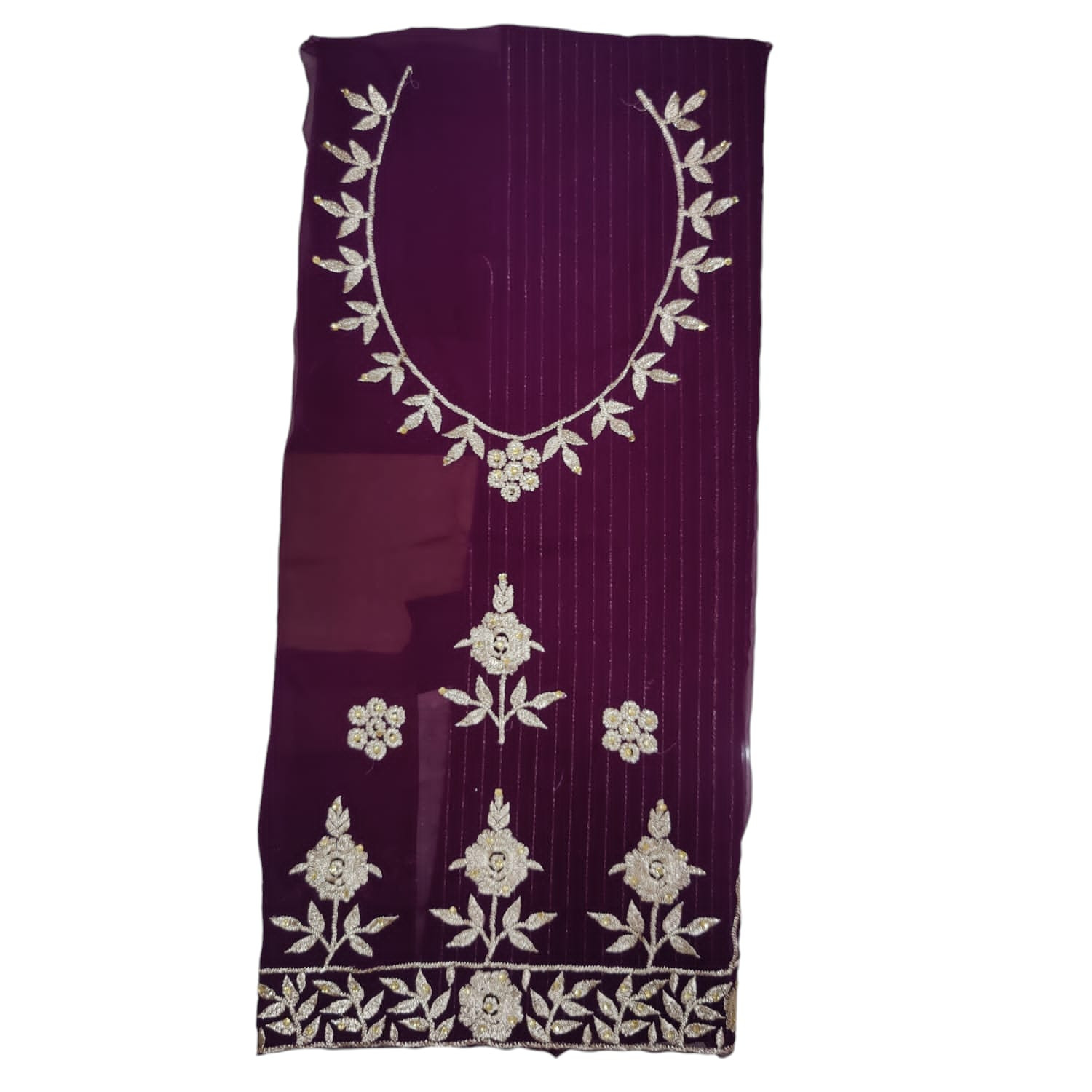 Intricate Designs: Look for suits that feature elaborate chapat zari patterns, such as floral motifs, paisleys, or geometric designs. The craftsmanship should be detailed and high-quality.