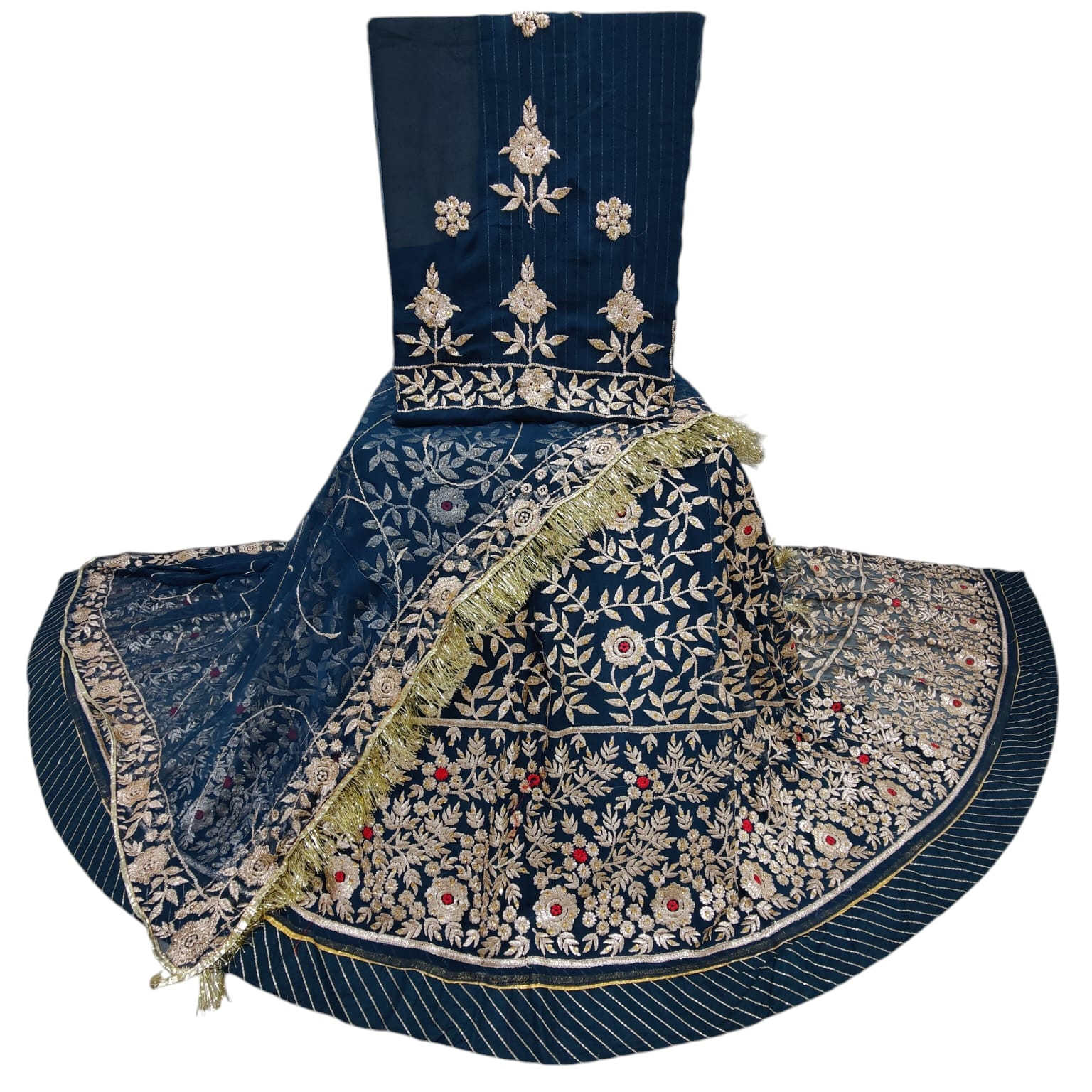 A heavy chapat zari Rajputi suit is an exquisite choice that embodies traditional elegance and grandeur. The chapat zari work, known for its intricate embroidery and gold or silver threads, can add a stunning touch to any outfit. Here are some features and styling tips for this beautiful attire: